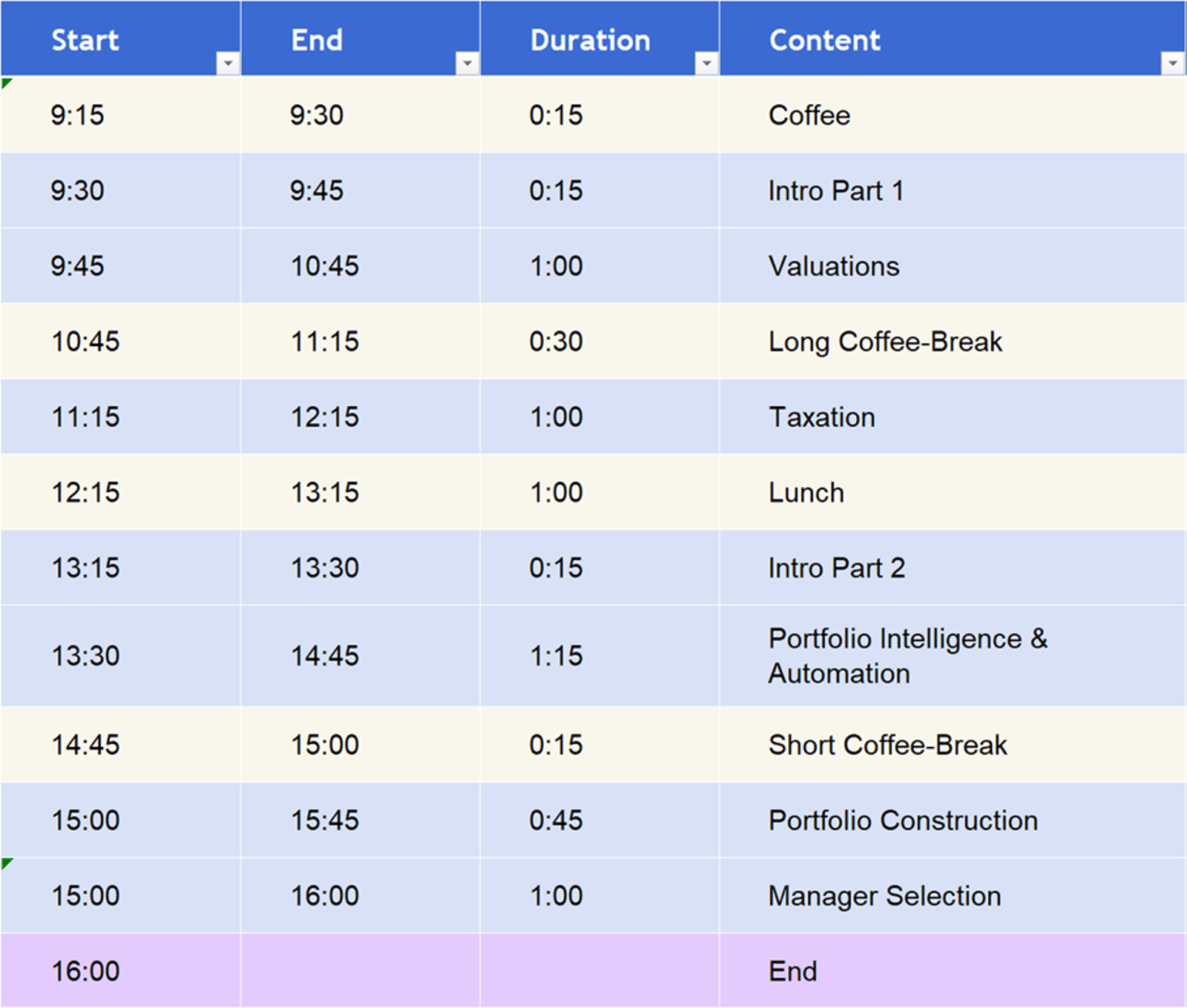 • Three presentations showcasing various capital allocation strategies across multiple asset classes (from VC to PE)