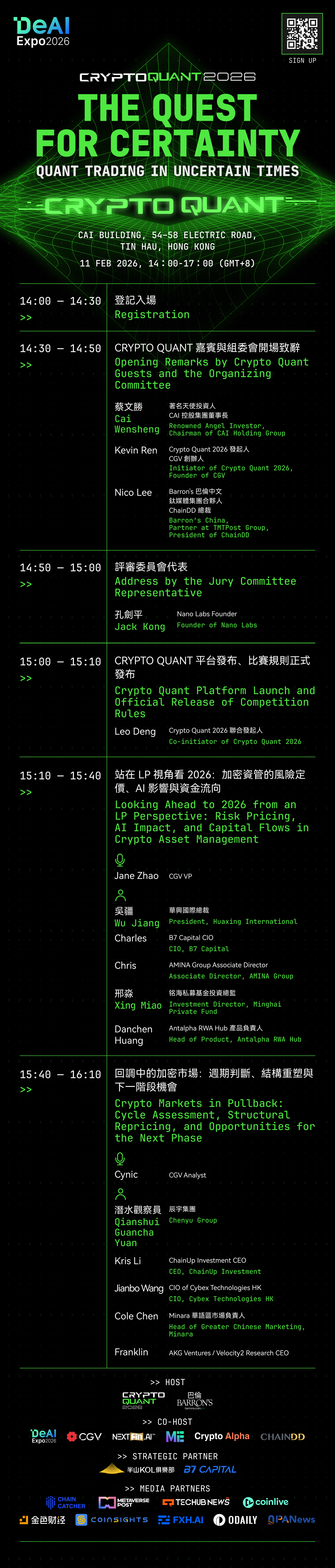 With the central theme “Searching for Certainty: Quantitative Trading in an Age of Uncertainty,” CRYPTO QUANT 2026 brings together leading quantitative fund managers, algorithmic traders, data scientists, and crypto asset researchers from around the world.
