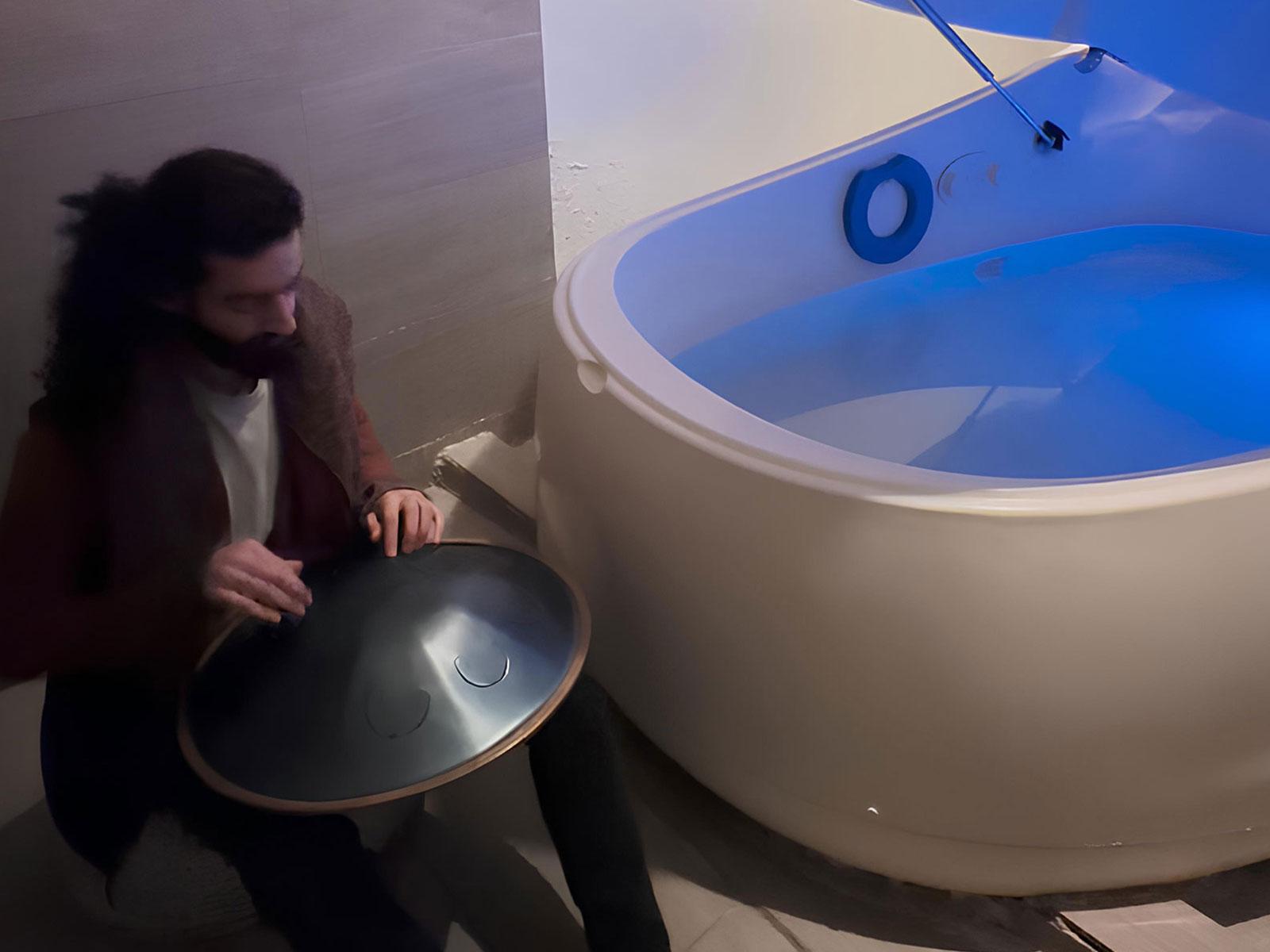 Each guest is in their own private tank. The live sound journey is delivered via the in-tank speaker, so the experience stays seamless and uninterrupted—built for deep recovery.