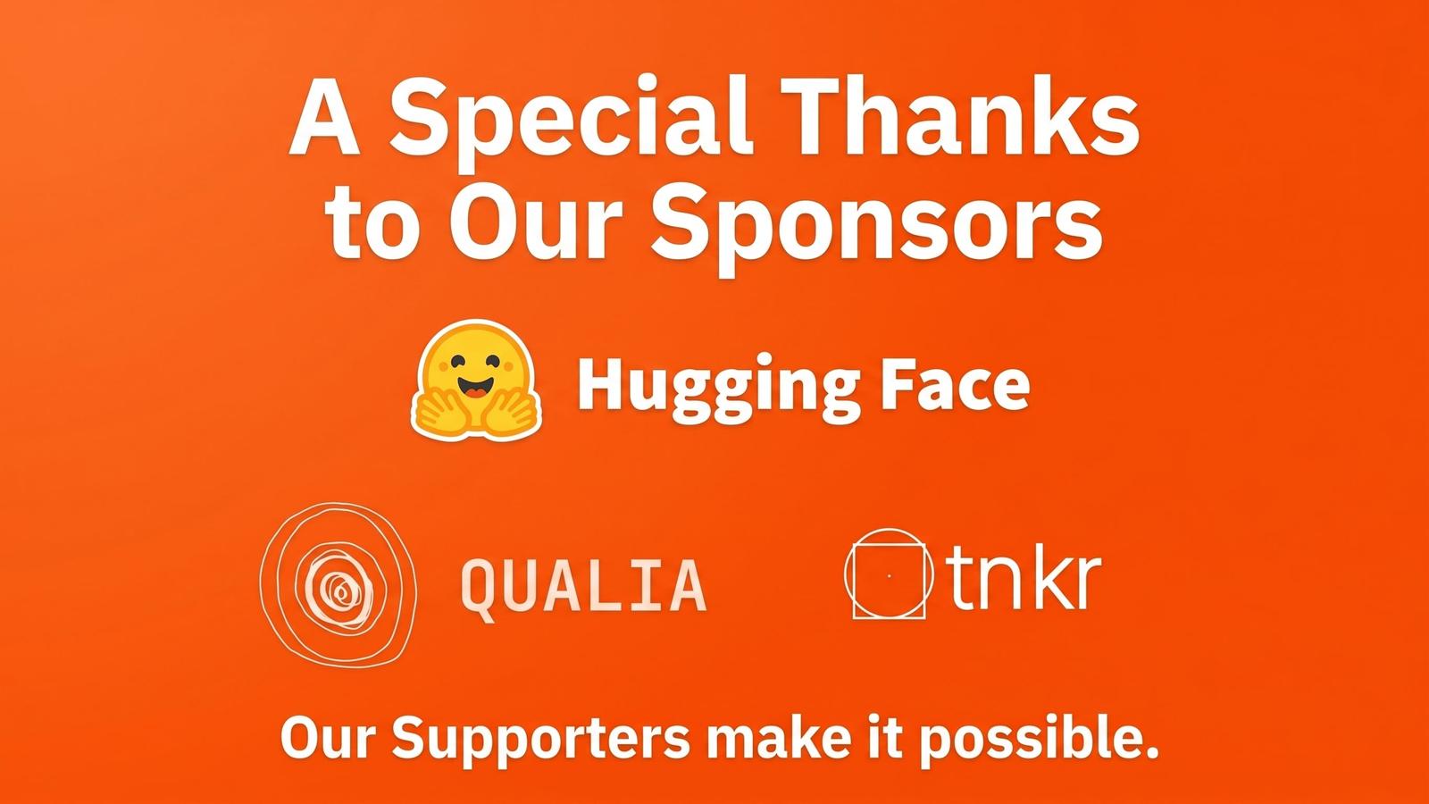 Sponsored by Hugging Face, Qualia and Tnkr.ai and …TBA
