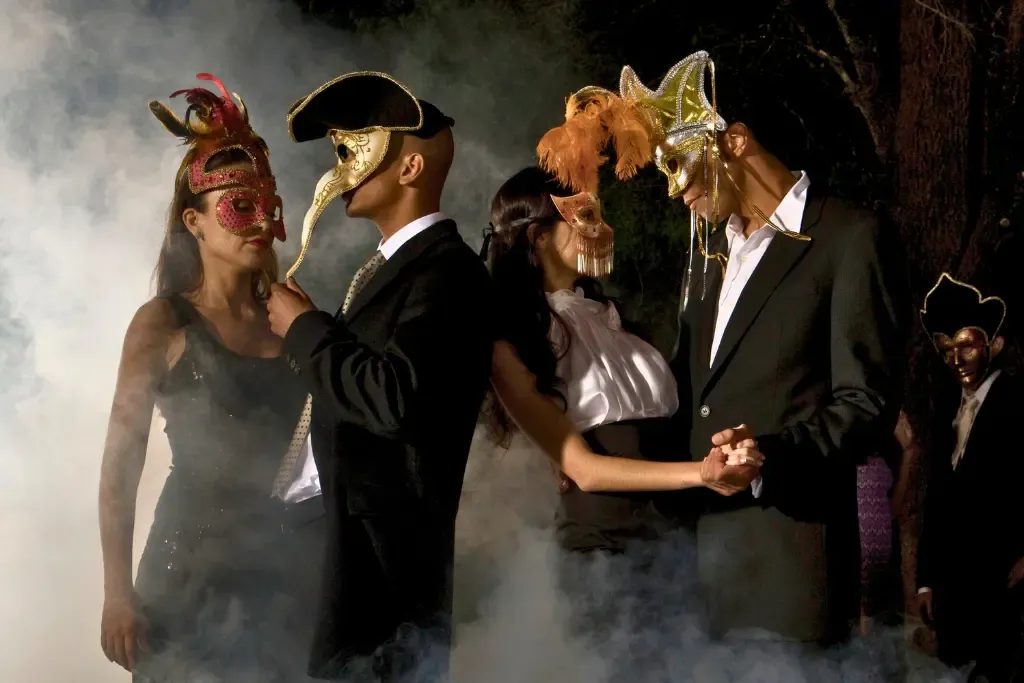 The masquerade setting adds mystery while making conversations more relaxed and memorable.