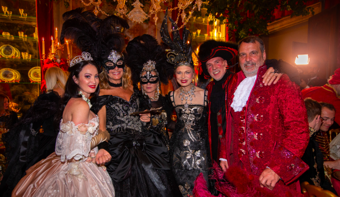 An evening of elegance and mystery. Guests are expected to wear formal black tie attire paired with a masquerade mask.