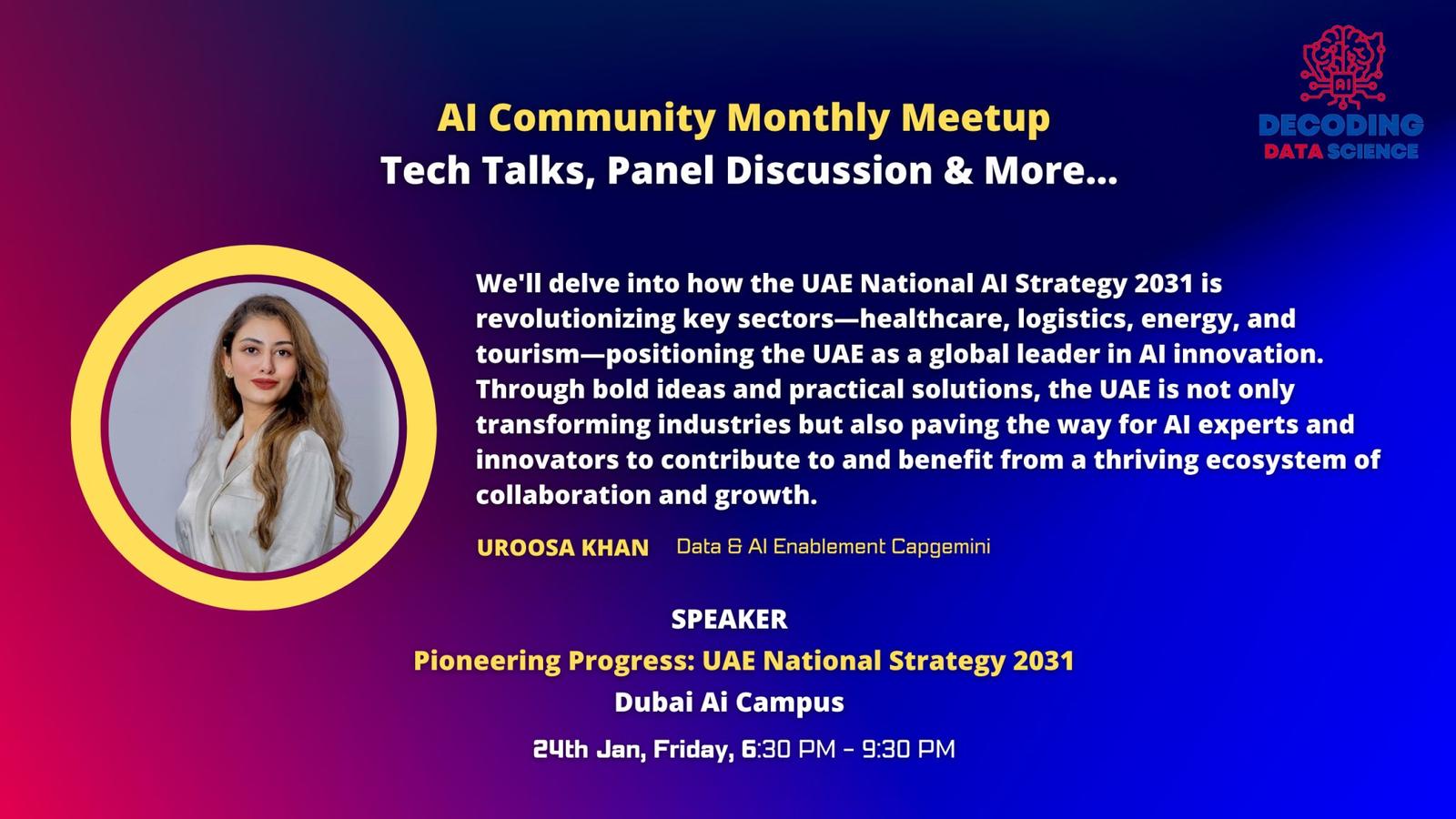 βLet's explore the UAE's groundbreaking AI Strategy, which aims to position the nation as a global AI leader by 2031 with our speaker for the evening Uroosa Khan, Data & AI Enablement, Capgemini