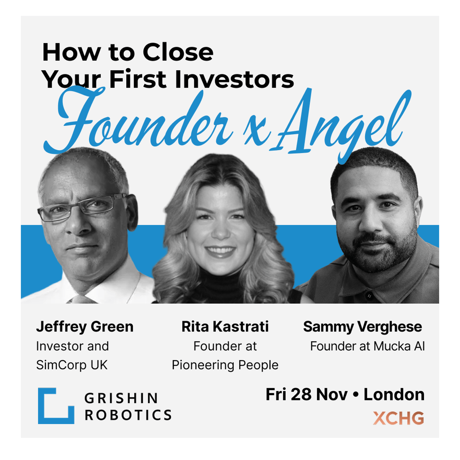 βWeβre cutting through the noise to bring you a real conversation with our two brilliant founders, Rita Kastrati and Sammy Verghese, Grishin Robotics accelerator alumni joined by Jeffrey Green an angel investor for a deep dive into what it takes to close your first round from both sides - founder and an investor!