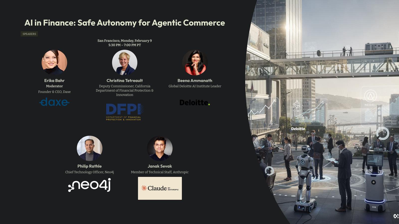 This event is about Safety, Compliance & Agentic Commerce in Financial Systems - on how autonomous AI systems can safely reason, act, and transact in regulated markets.