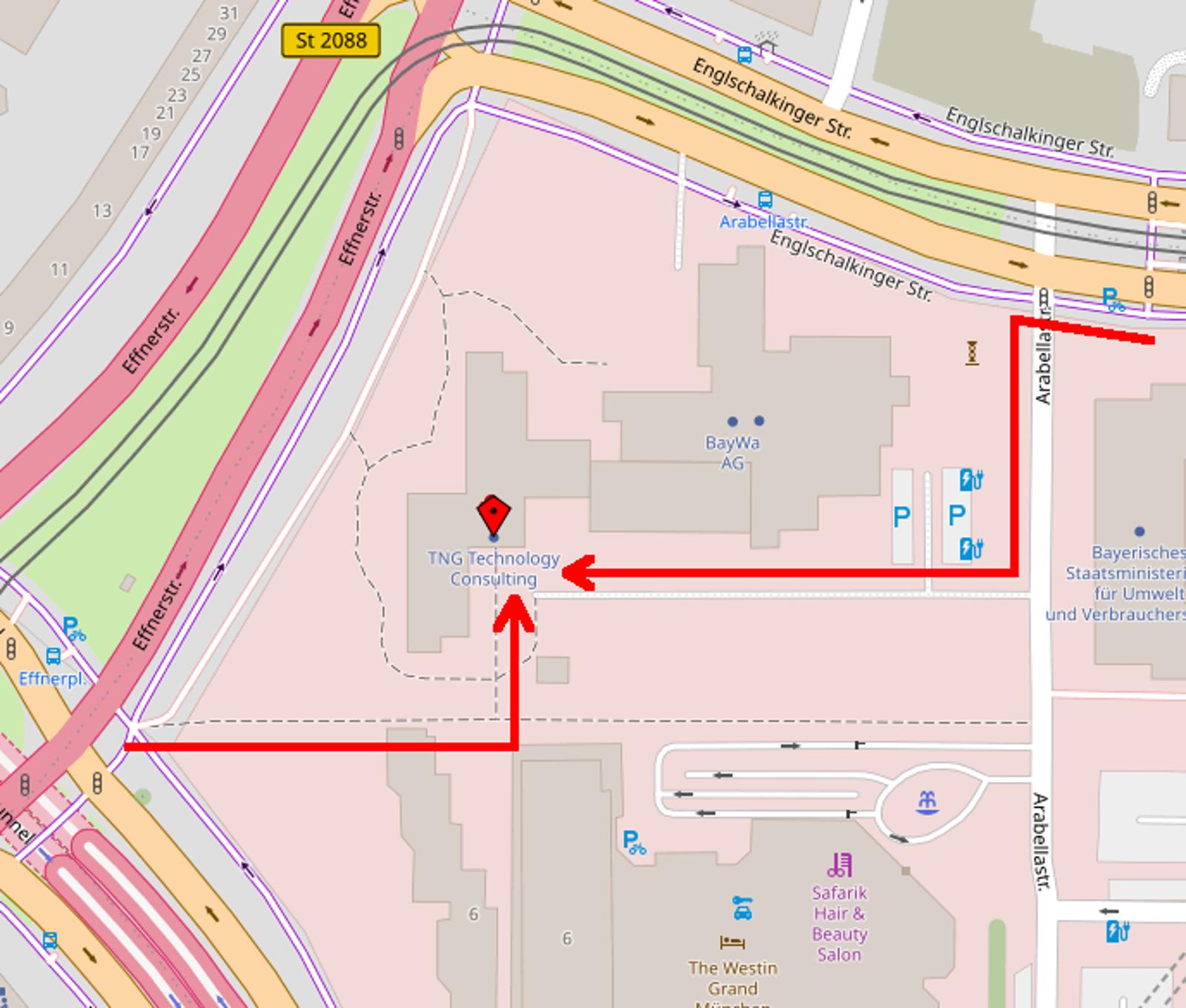 It is the lower building located right next to the BayWa high-rise. Please note that the entrance is not on the street side, but on the opposite side of the building.