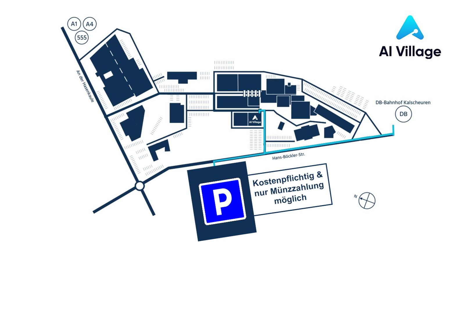 Es gibt Parkplätze um das AI Village