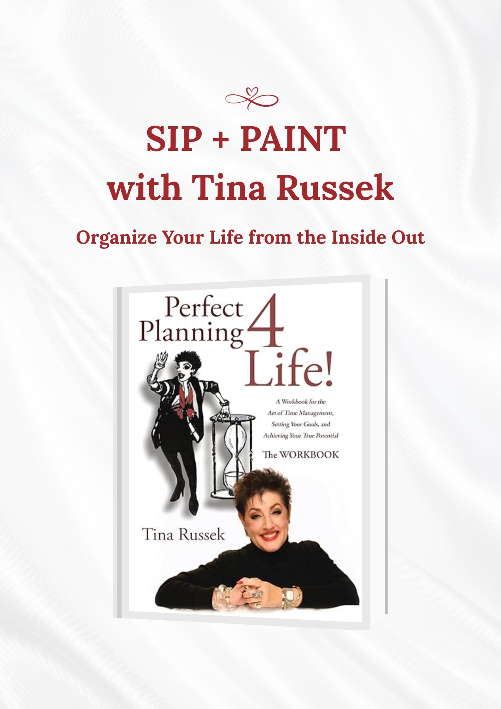 As you enjoy a relaxing sip & paint experience, Tina will share insights from her "Perfect Planning 4 Life, The Workbook": a powerful tool designed to help you organize your life from the inside out. During a special 30-minute segment, she’ll walk you through her approach, share her journey, and answer any questions you may have.