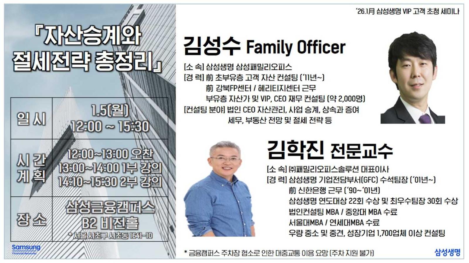 패밀리오피스 전문팀이 함께하는 프리미엄 세미나에서 뵙겠습니다.