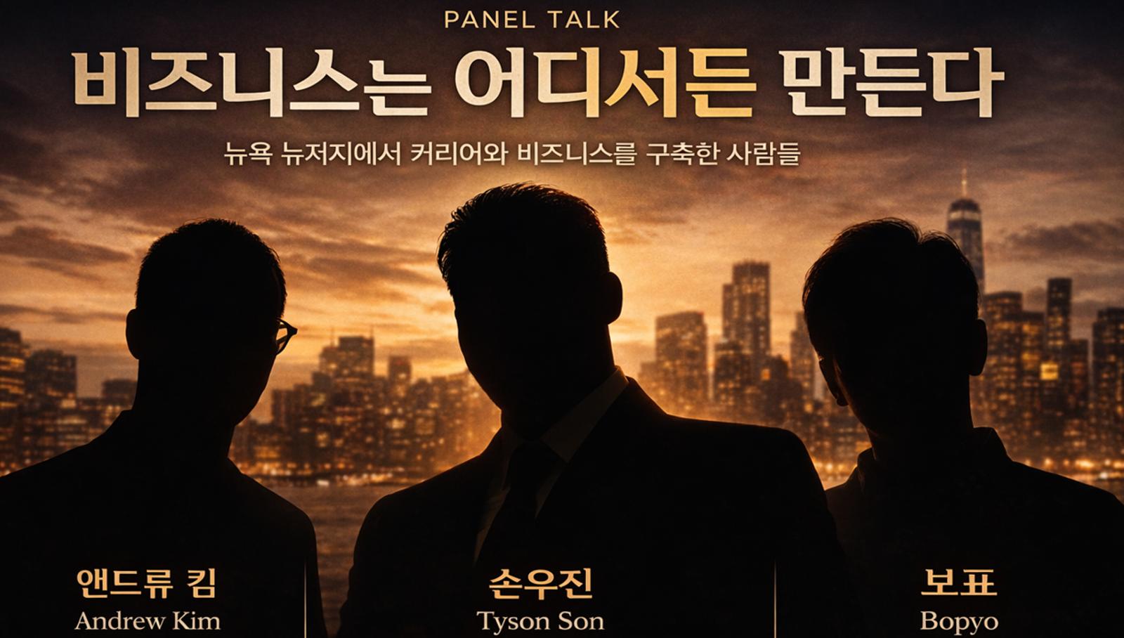 Andrew Kim, Tyson Son, 그리고 Moderator Bopyo와 함께 뉴욕에서 비즈니스를 만들고 확장해온 현실적인 이야기를 나누는 시간입니다.
