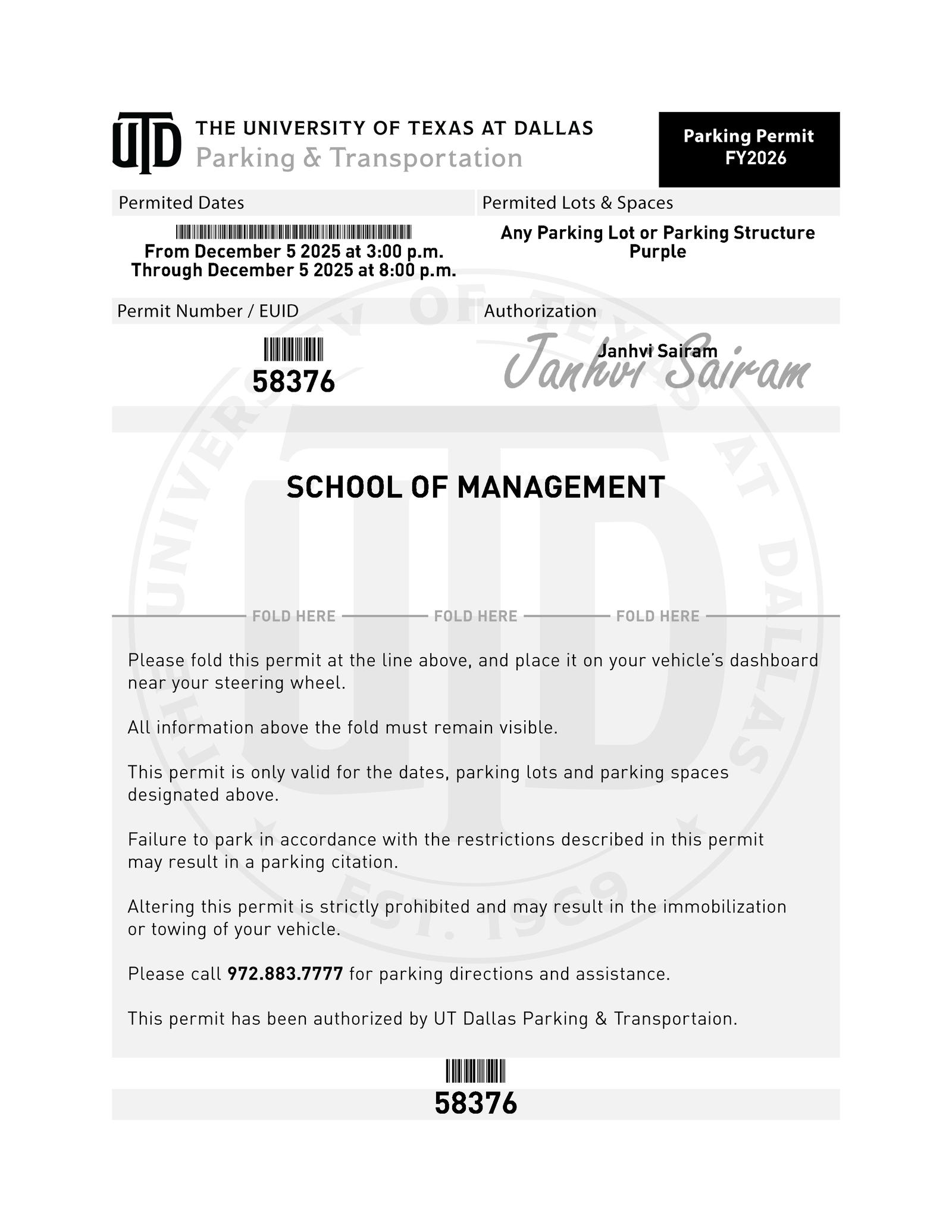 Please print and bring the free parking ticket: