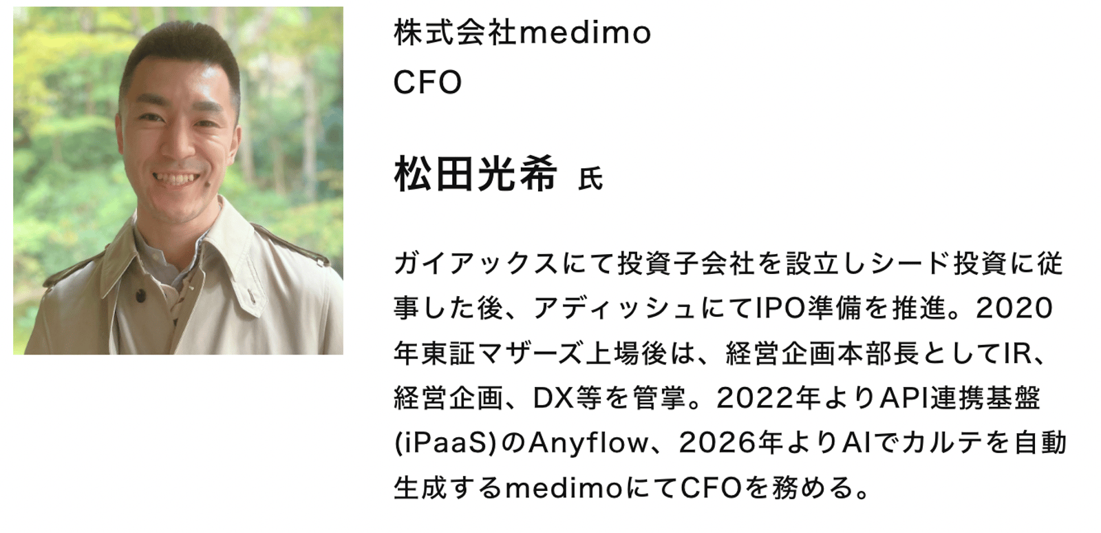 松田光希氏(株式会社medimo CFO)
