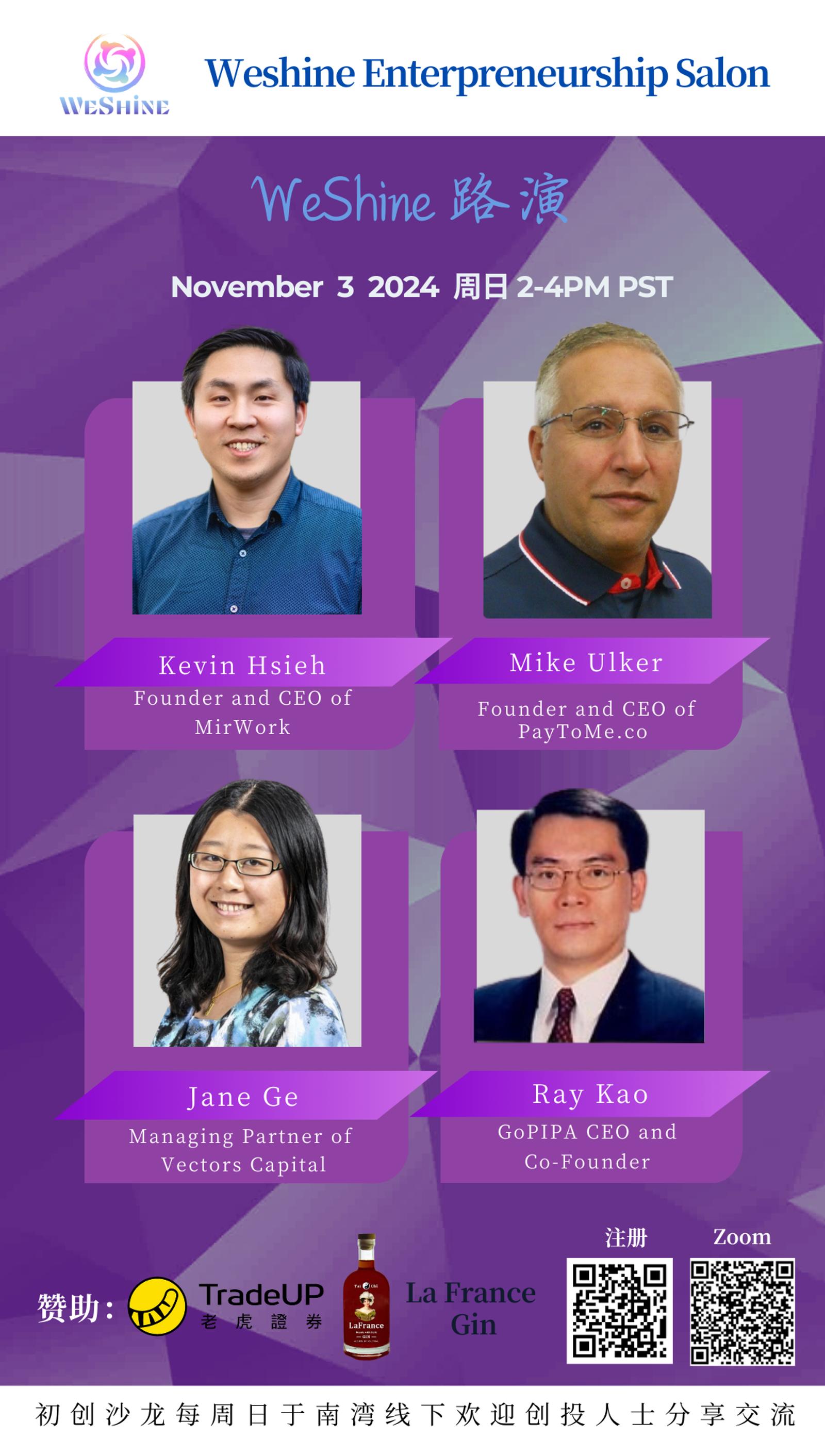 [Sun] 欢迎您参加11/3 12-4P GenAI硅谷峰会Side Event Lunch Party + WeShine 沙龙 、地点Santa Clara的深圳湾科技创新中心。