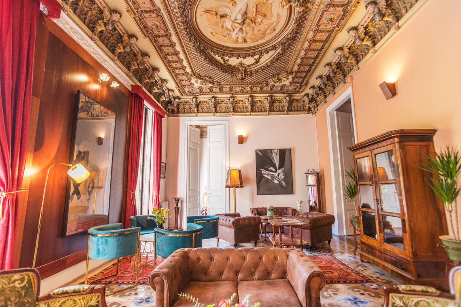 🎭 El lugar: Una impresionante mansión privada con terraza, obras de Dalí y Rembrandt, interiores tipo lounge, decoración vintage y sofás —un verdadero palacio que te dejará sin palabras.