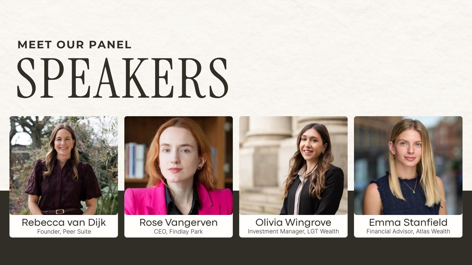 A curated panel discussion hosted by Peer Suite founder Rebecca van Dijk, featuring expert speakers in financial planning and investment management