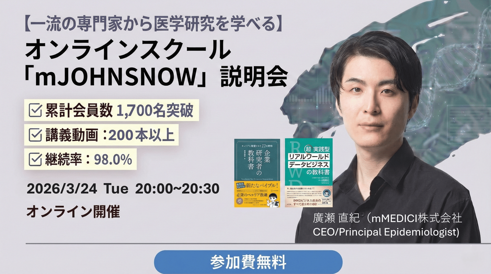 【一流の専門家から医学研究を学べる】オンラインスクール「mJOHNSNOW 」説明会