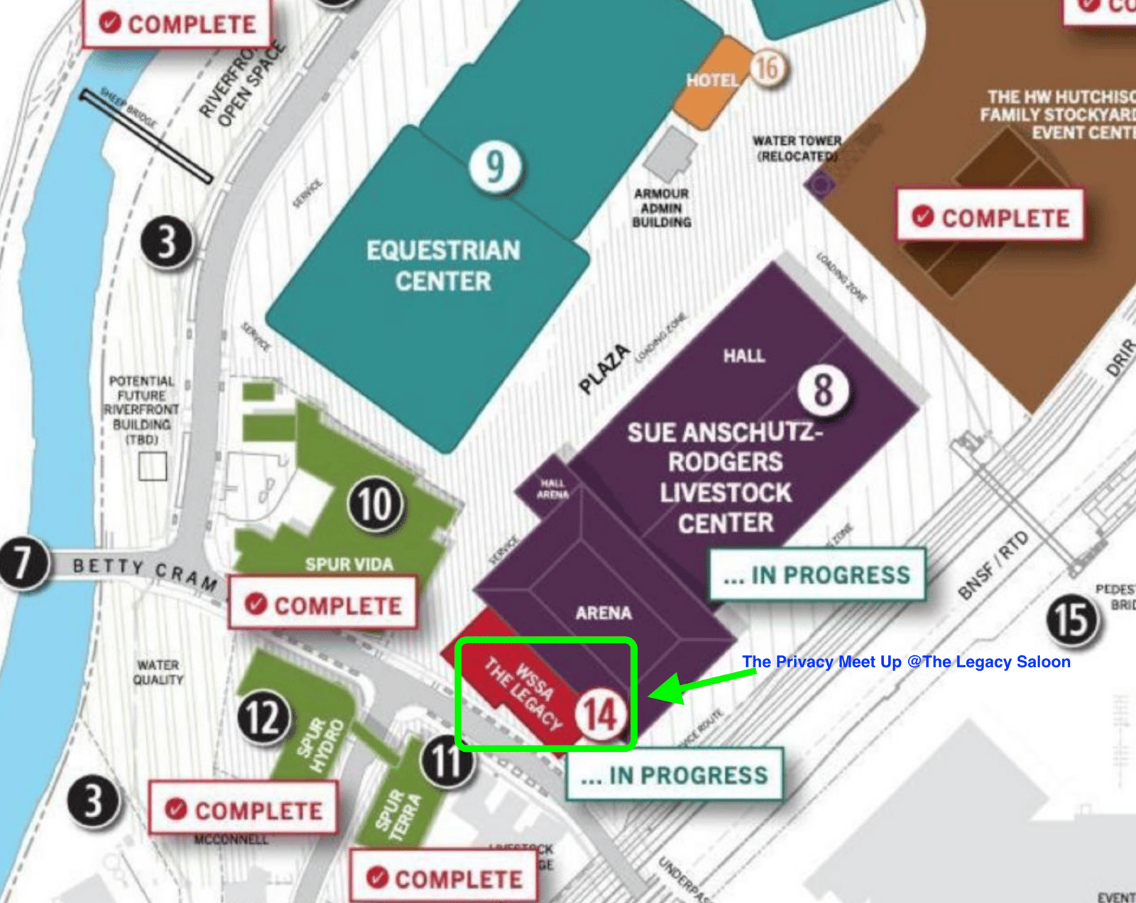 Enter the National Western Center via the main entrance off National Western Drive. After entering the campus, follow signage toward the BUIDLHub Arena. The Legacy Building is located next to it. Once inside, proceed to the 1st floor and follow signage to the Legacy Saloon.
