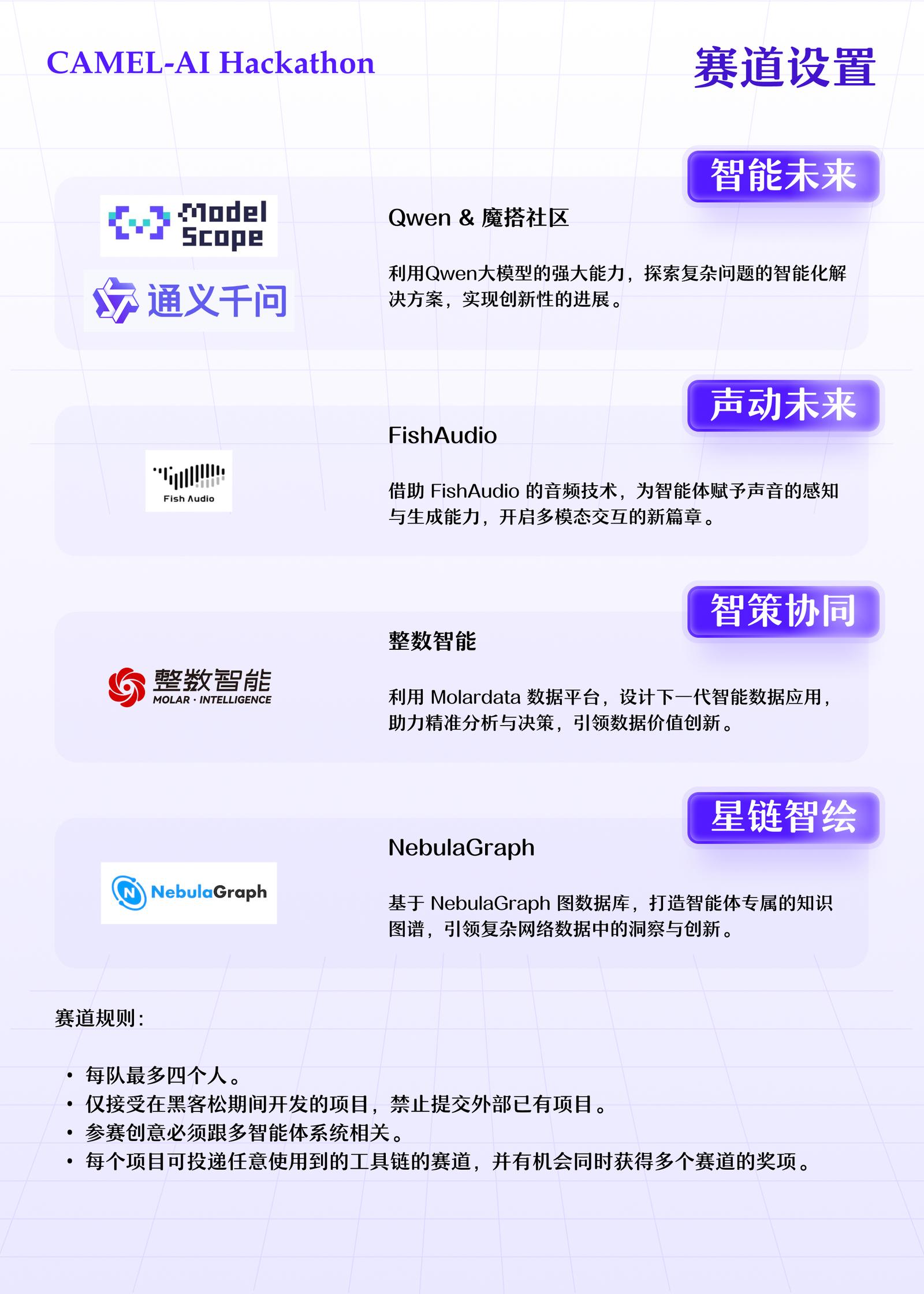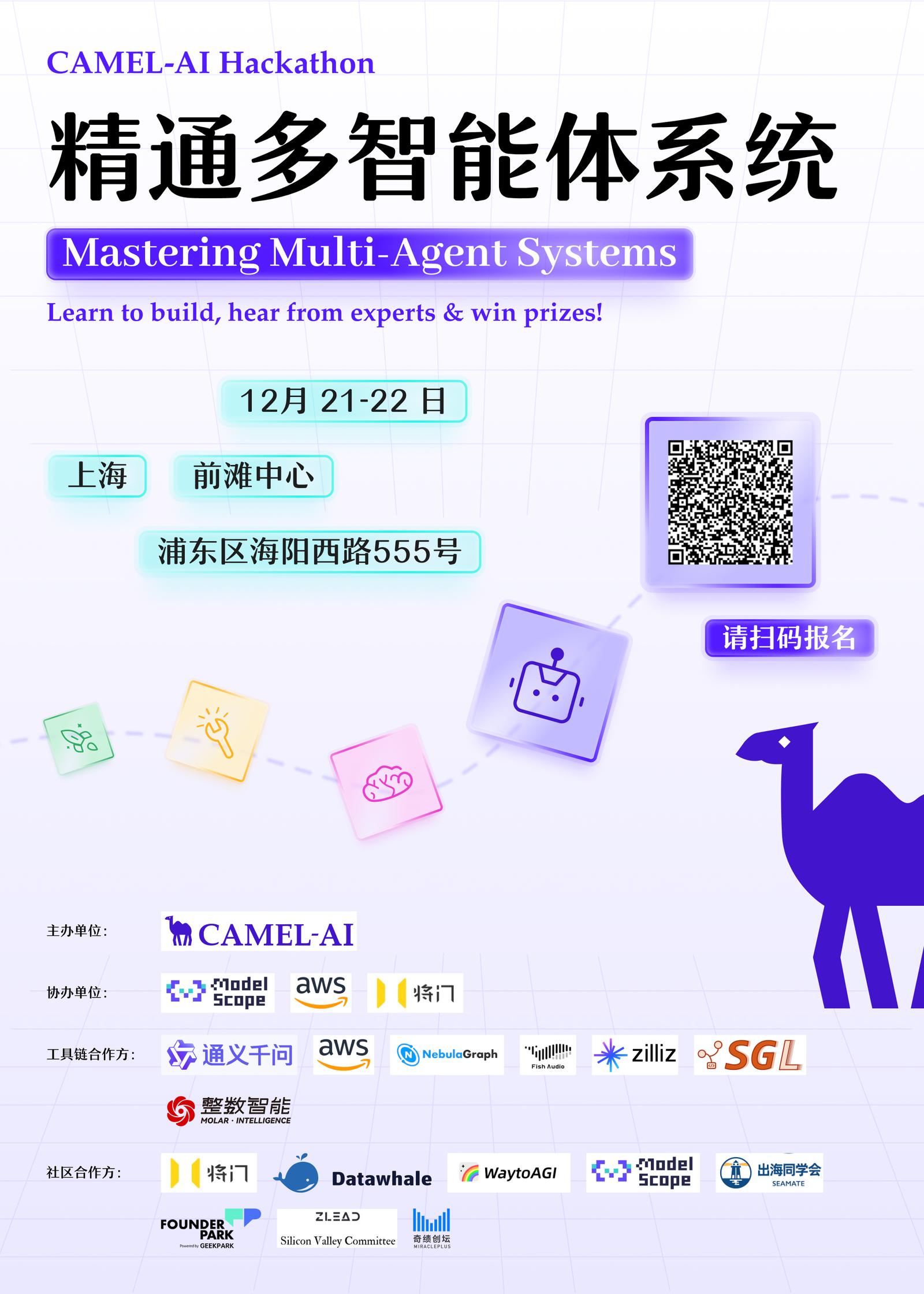 探索多智能体未来,与顶尖技术同行!报名即将开启,期待与您相聚在CAMEL-AI Workshop & 黑客马拉松,一起用技术点燃创意火花,迎接多智能体新时代!