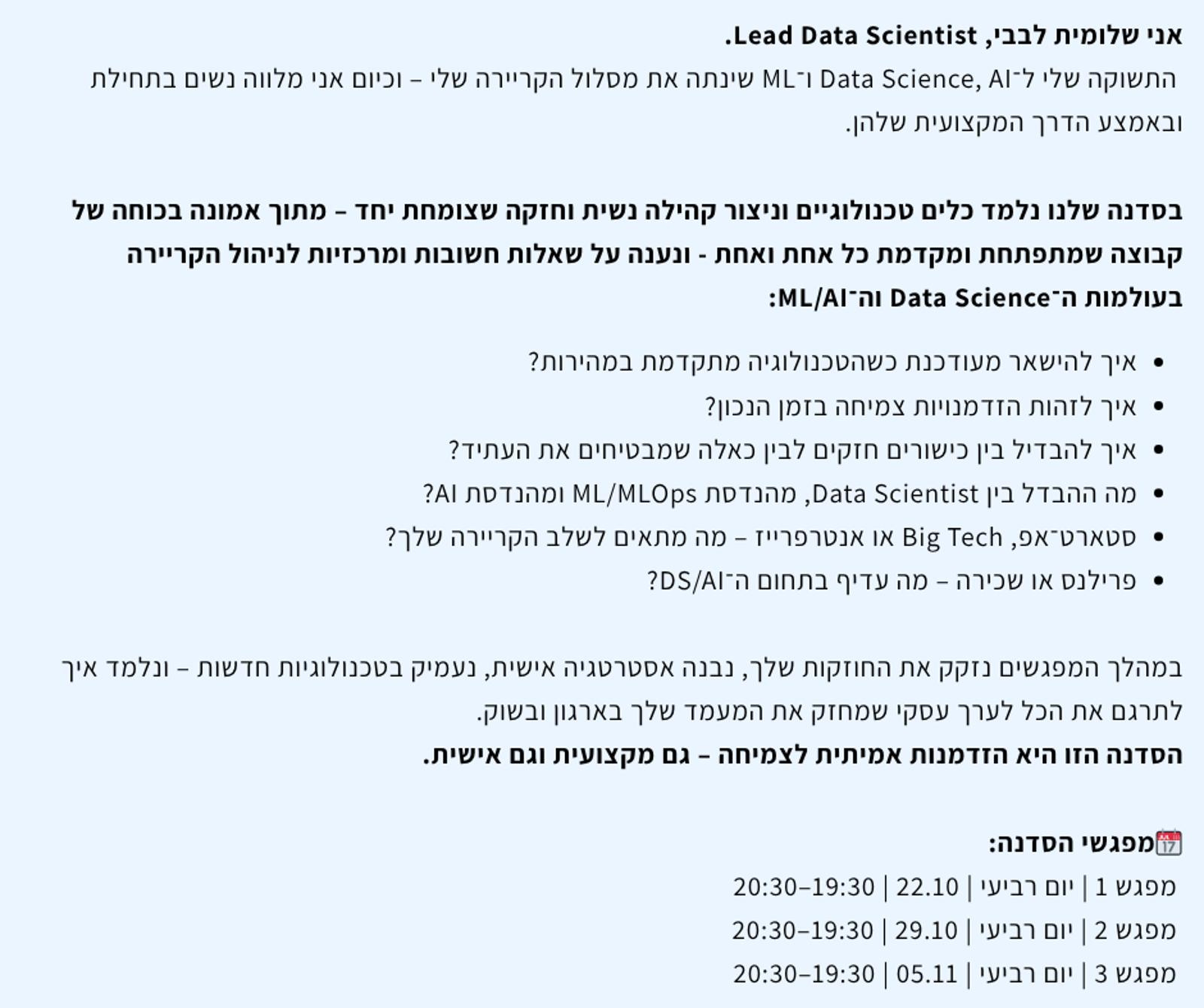 Data Scientist שלומית לבבי - פיתוח קריירה בעולמות ה