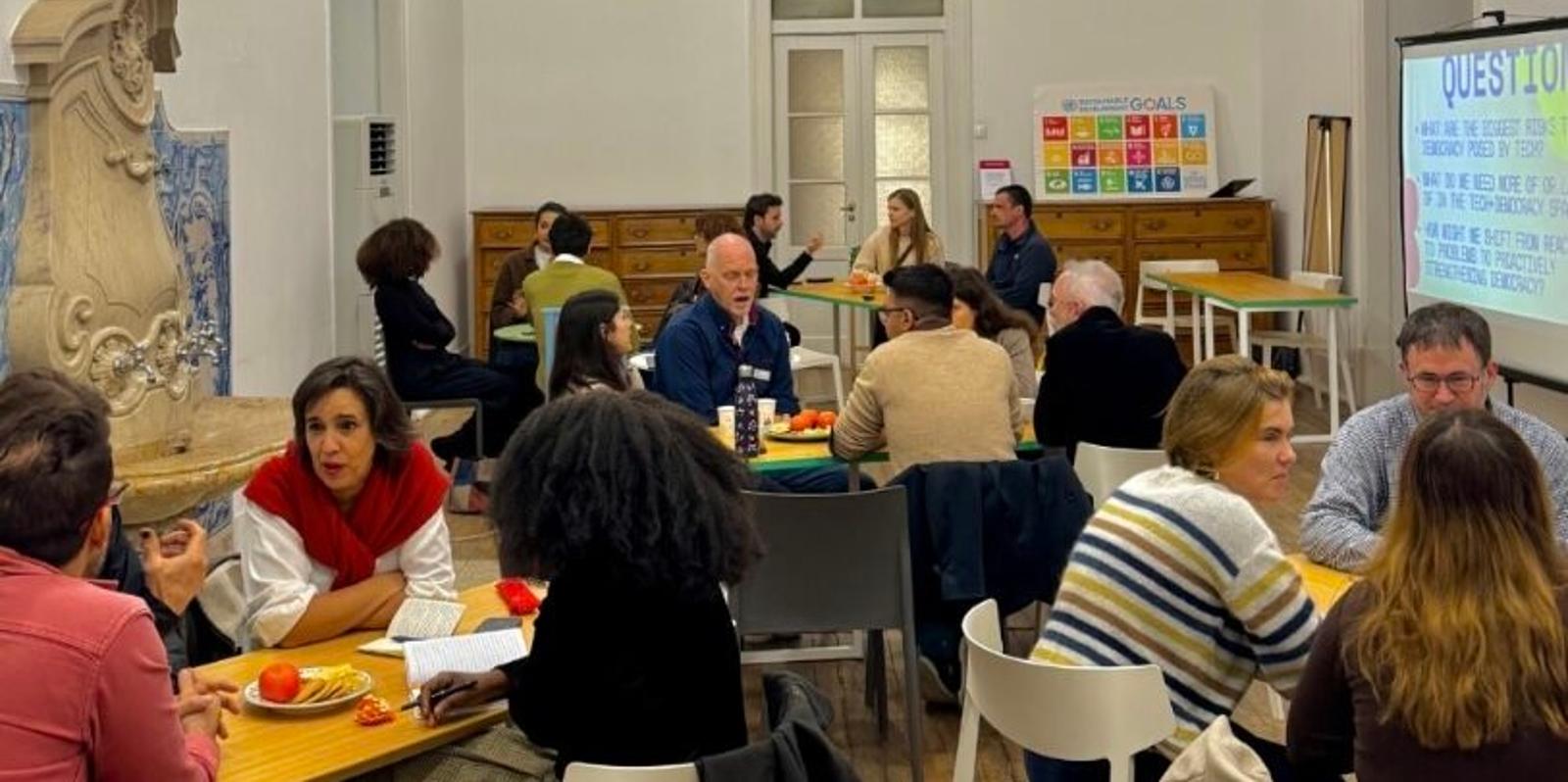 βOur Tech + Democracy meetups are about connection, conversation, and action. We believe that if we want technology to bolster democracy and social cohesion, we must come together, hash things out, and build relationships across disciplines and geographies.