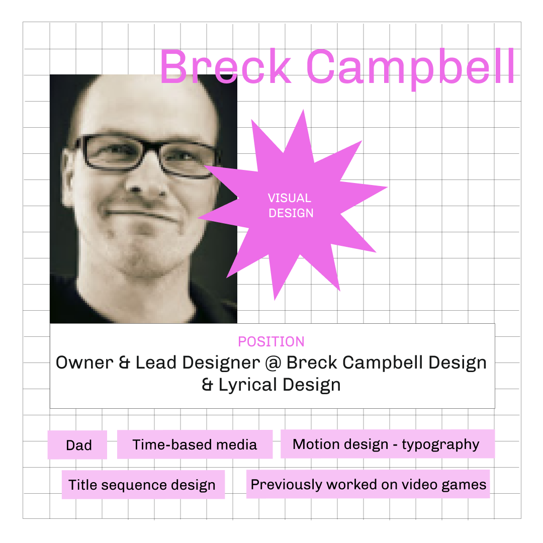 Breck Campbell loves being a Dad; a creative collaboration of any kind, be it in music, film, art, poetry, design, or teaching. They have a special interest in typography and time-based media - especially title sequence design and typography in motion. Breck has recently been obsessed with hunting and collecting antique or innovative functional artifacts - made of glass. (Is that weird?)