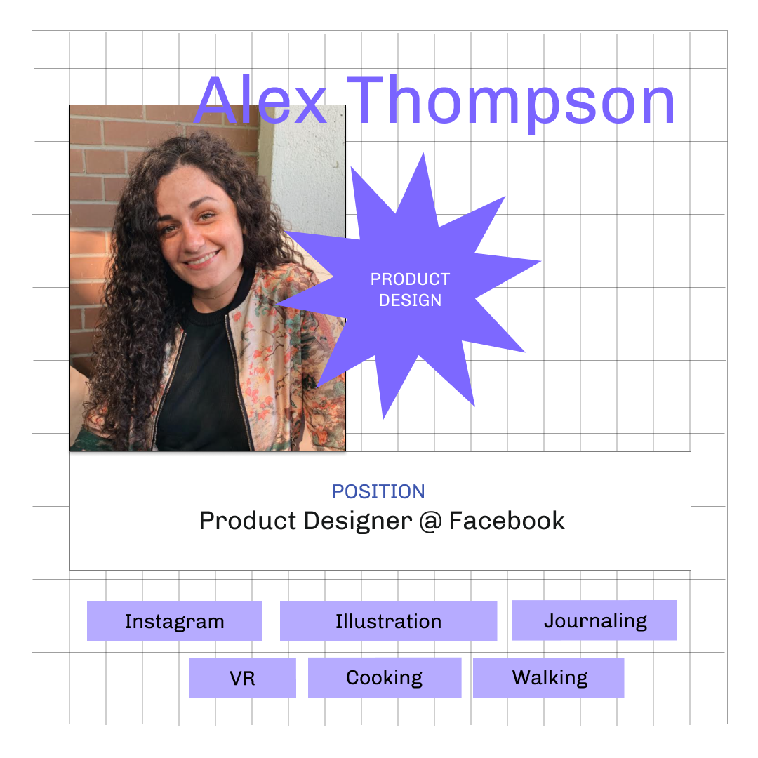 Alex Thompson graduated from Sheridan IXD in 2020 after completing a Bachelor’s Degree in Philosophy at UPEI in 2015. During her time at Sheridan, she competed in several hackathons, to which she credits some of her most important experience and opportunities. She now works in London, UK as a product designer on Facebook’s omnichannel commerce team, improving the ways businesses grow in our rapidly changing world. (@userologist)