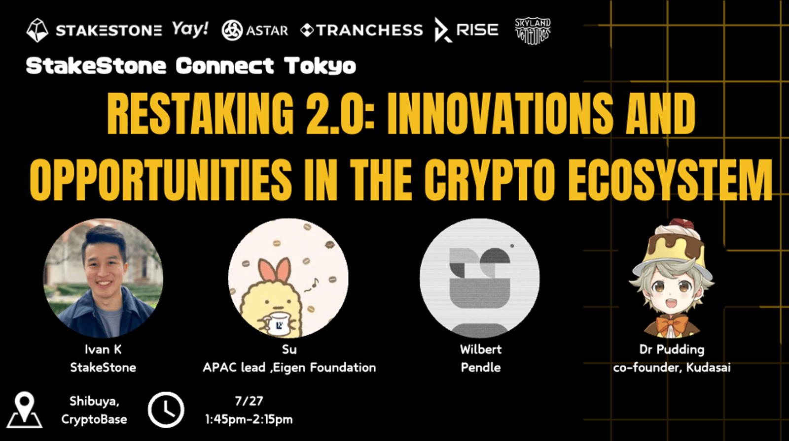 Expect a day packed with inspiring talks from industry experts and plenty of chances to connect with like-minded innovators. We'll dive deep into the latest trends, challenges, and opportunities in the DeFi space, all while enjoying the energetic atmosphere of Tokyo.