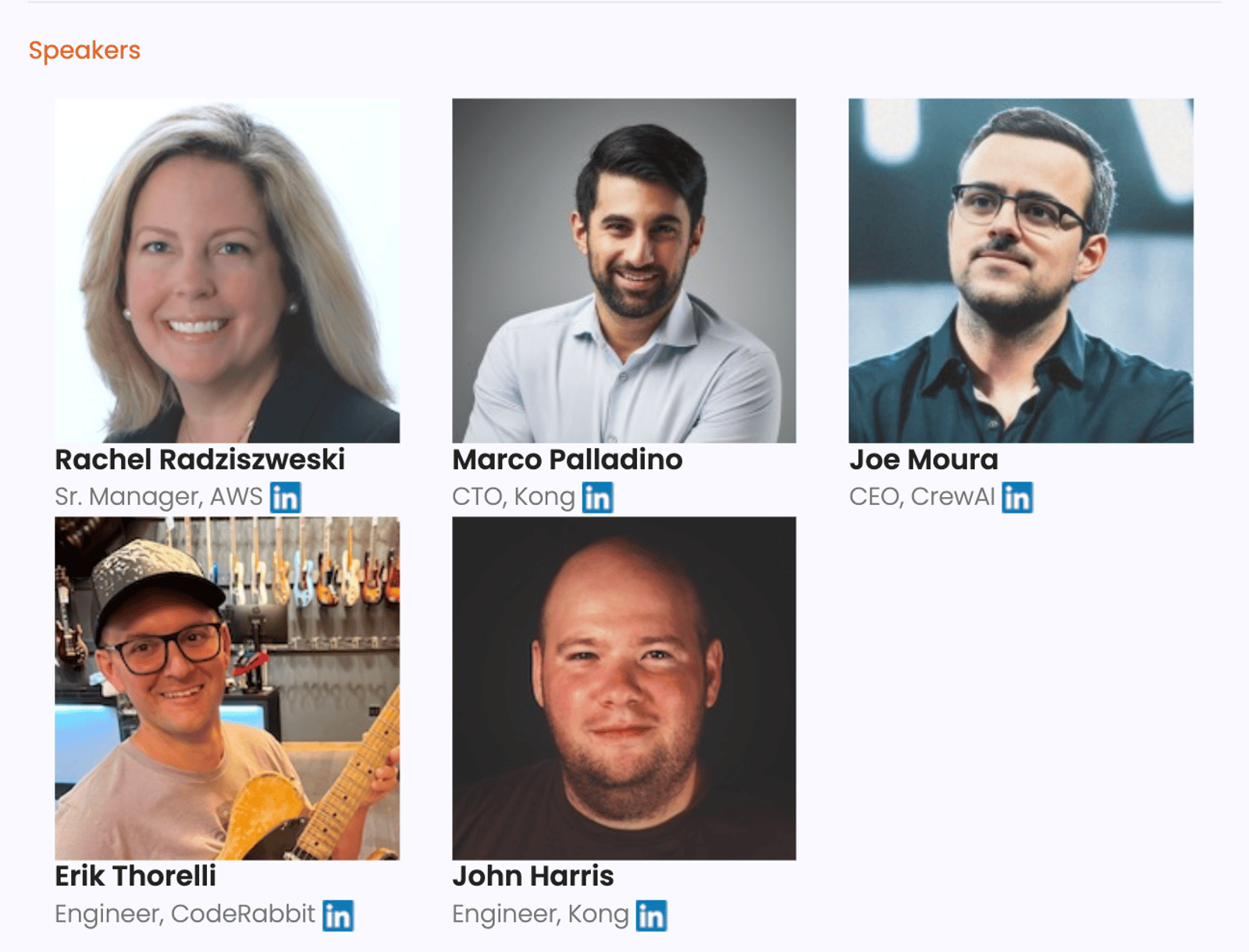 The Amazon Web Services (AWS) Agentic AI Partner Showcase (Third Edition) features experts from AWS, Kong, CodeRabbit, and Crew AI, who will demonstrate how Agentic AI automation can improve business operations across industries. This focused session will present current Agentic AI through live demonstrations, implementation strategies, and interactive discussions. The speakers will share practical insights into how these technologies can enhance your business processes and support innovation.