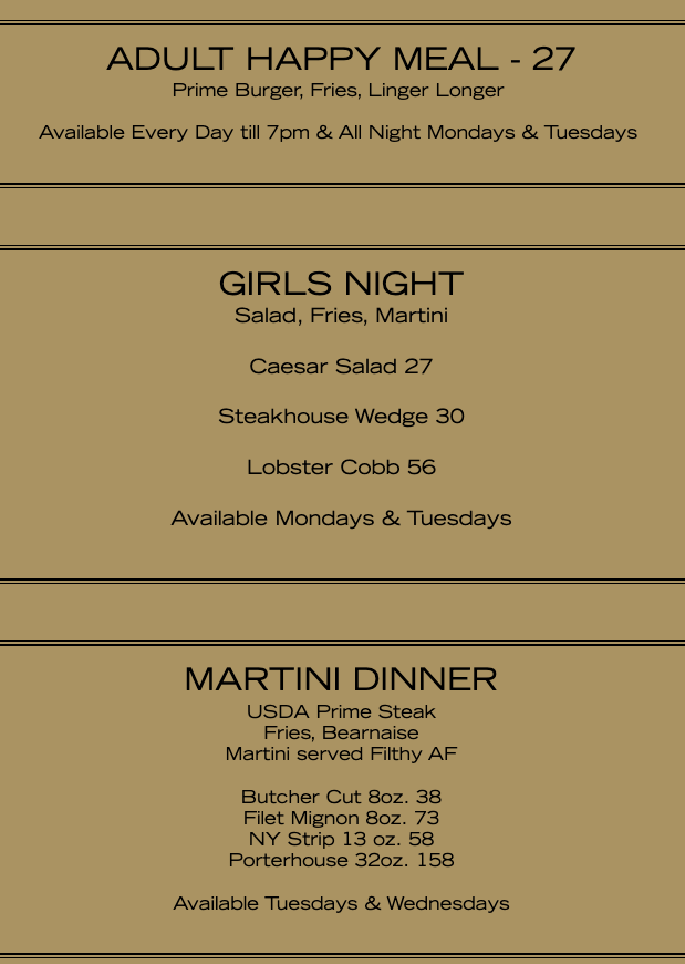 The menu for the evening! We’re all covering our own bill so plan accordingly: