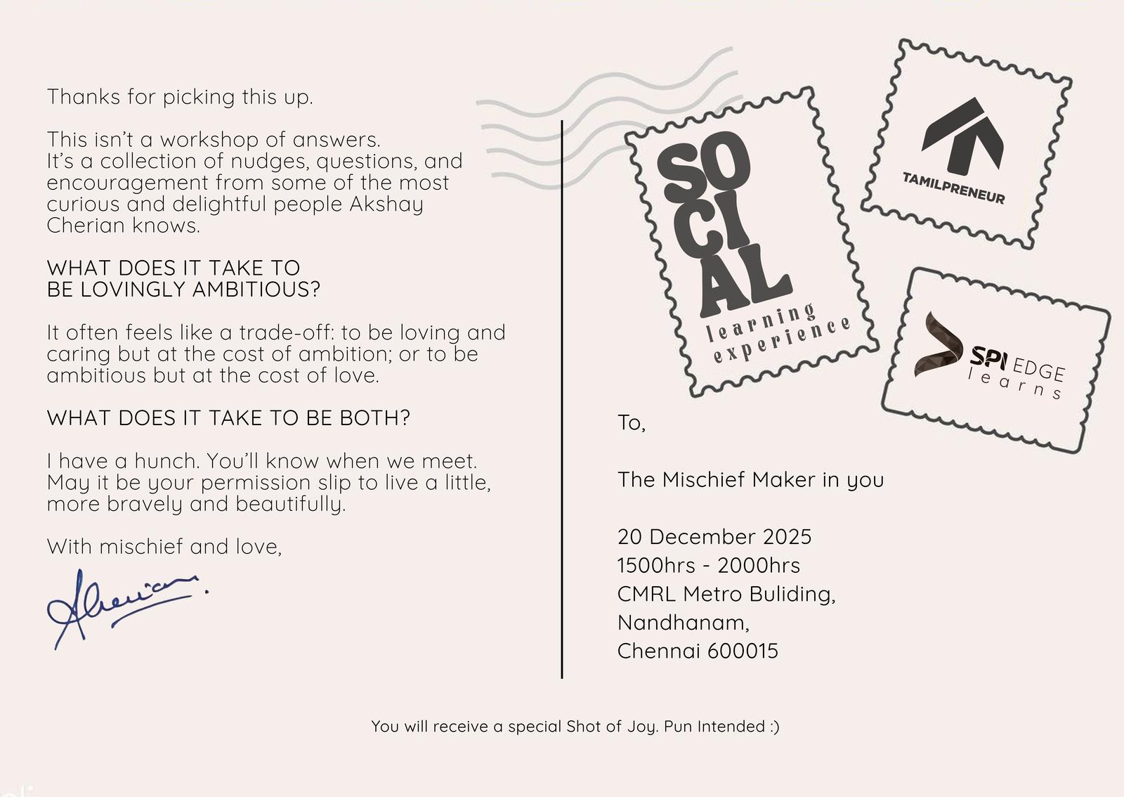 Entry is strictly by confirmation only. Tamilpreneur reserves the right to shortlist attendees based on relevance and availability.