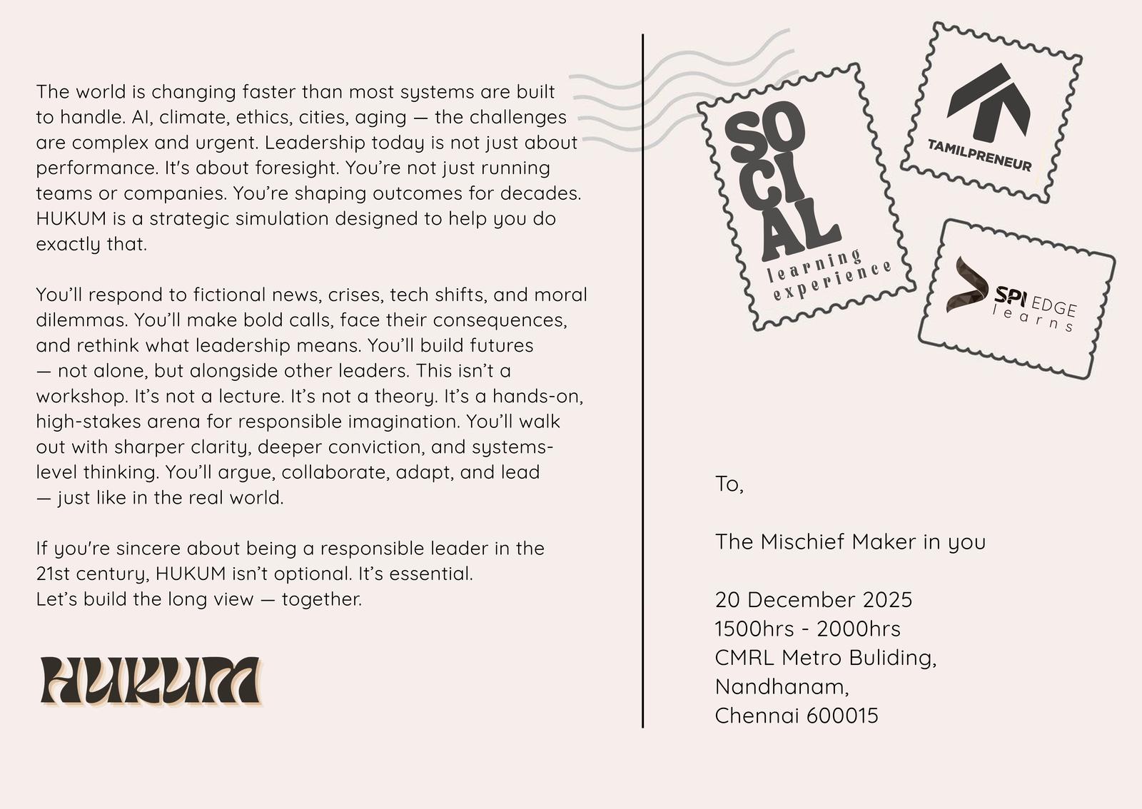 🎯 Event Title: Hukum Play the Future. Lead with Consequence.