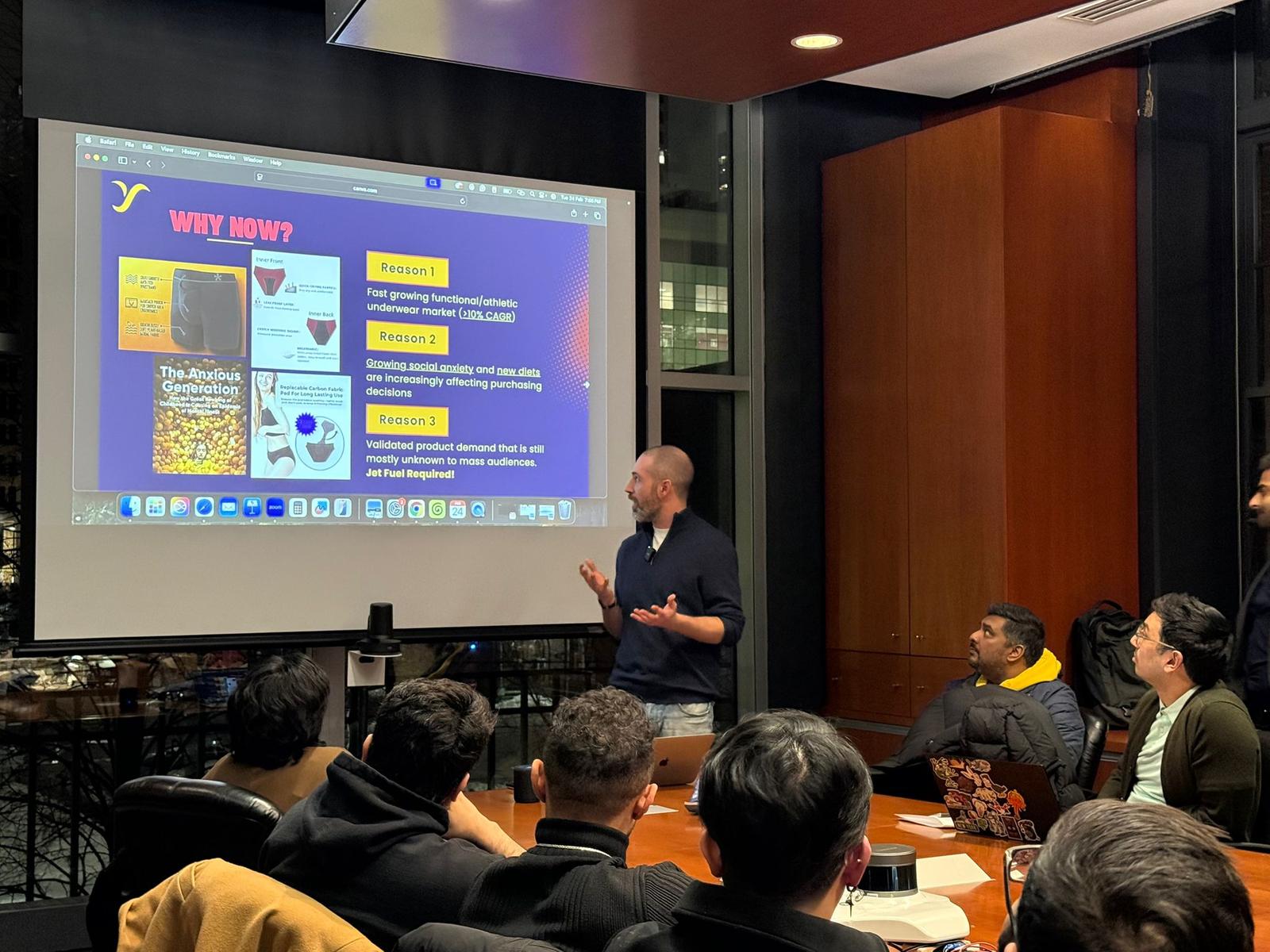 This is a live teardown of real pitches and real products, in a room of 25 people.