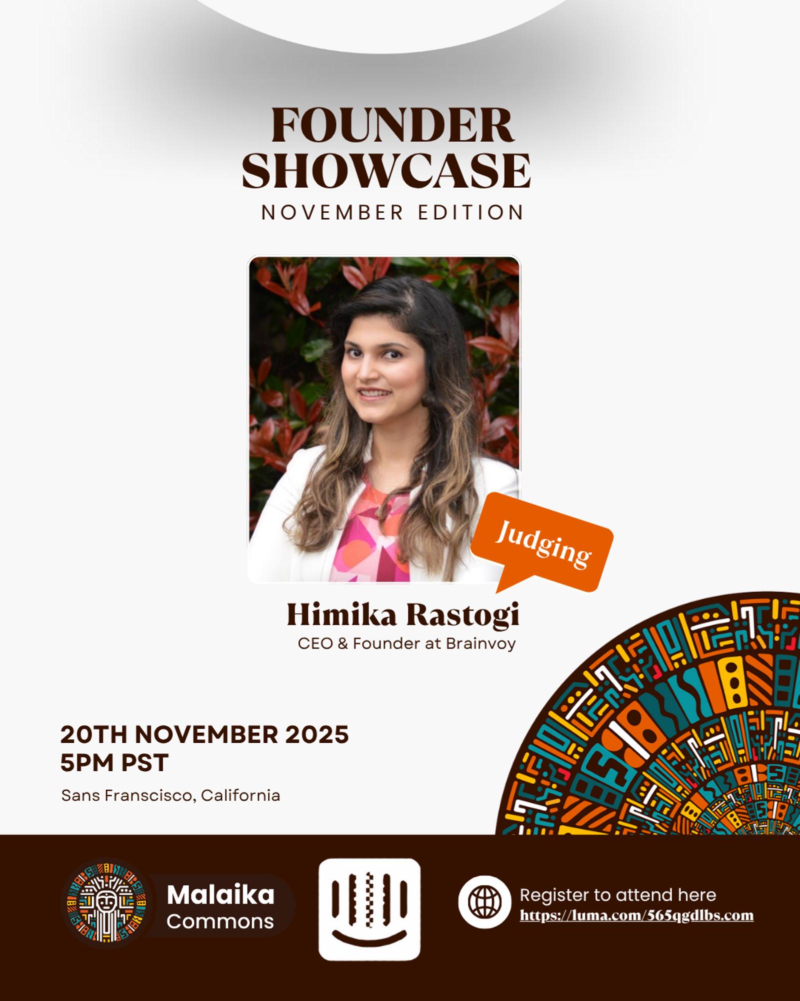Malaika is a community of founders and investors in San Francisco focused on connection, collaboration, and growth. Through monthly mixers, pitch showcases, and curated events, Malaika creates space for meaningful conversations and opportunities that move founders forward.