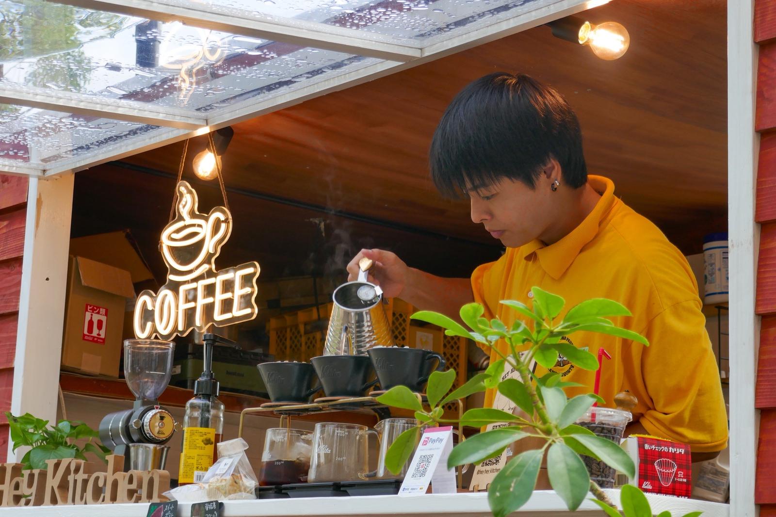 佐賀大学3年生の本間遼平です。自作のキッチンカーでコーヒーと軽食を提供する「Hey Hey Kitchen」を運営しています。2026年は休学をして日本の中山間地域を周ります。
