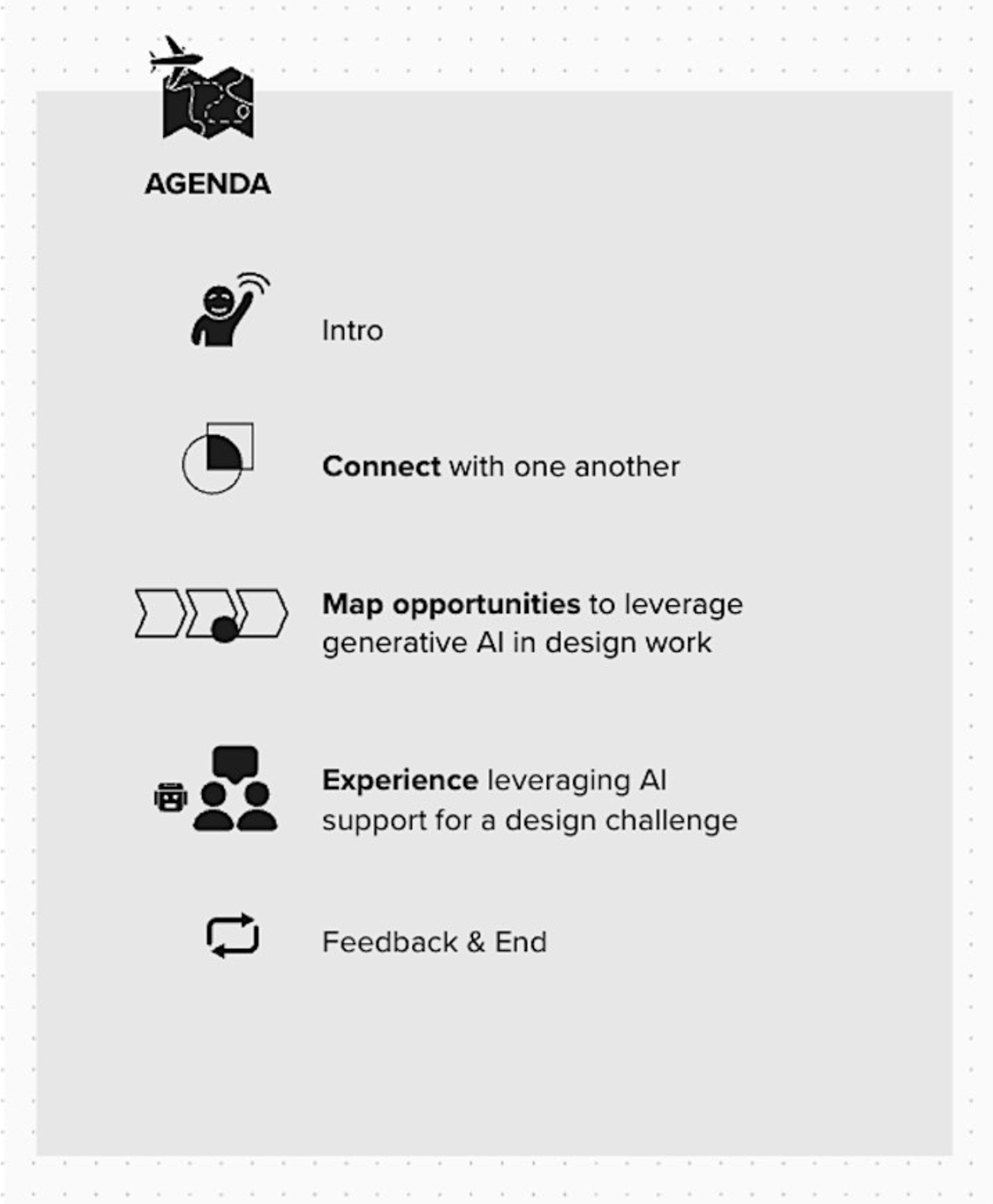 A simple design challenge, where we'll collaborate with teammates to synthesize, ideate, and create a narrative using gen AI