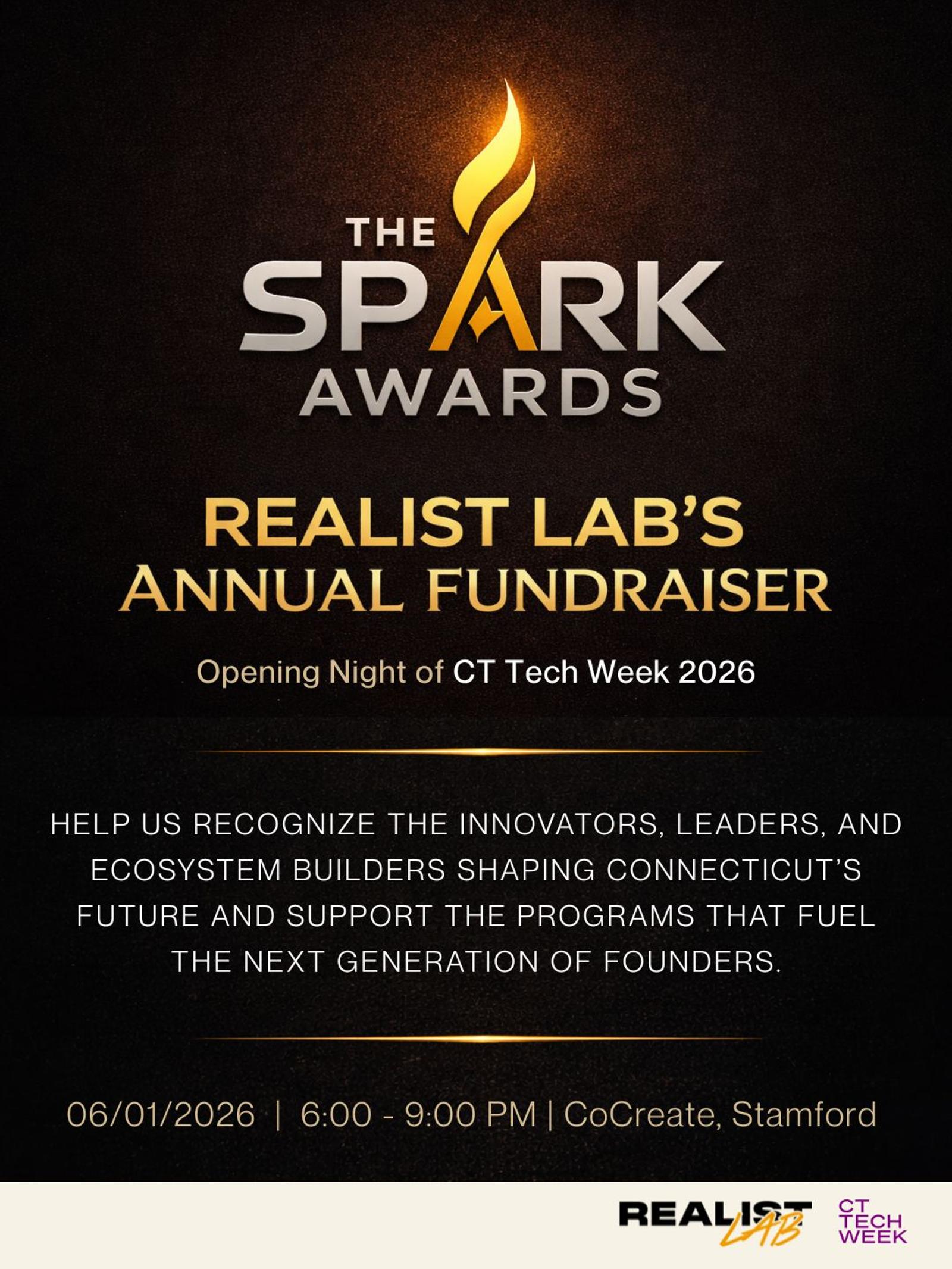 Join us for the Realist Lab Spark Awards, an evening recognizing the founders, builders, and community leaders shaping Connecticut's innovation ecosystem.