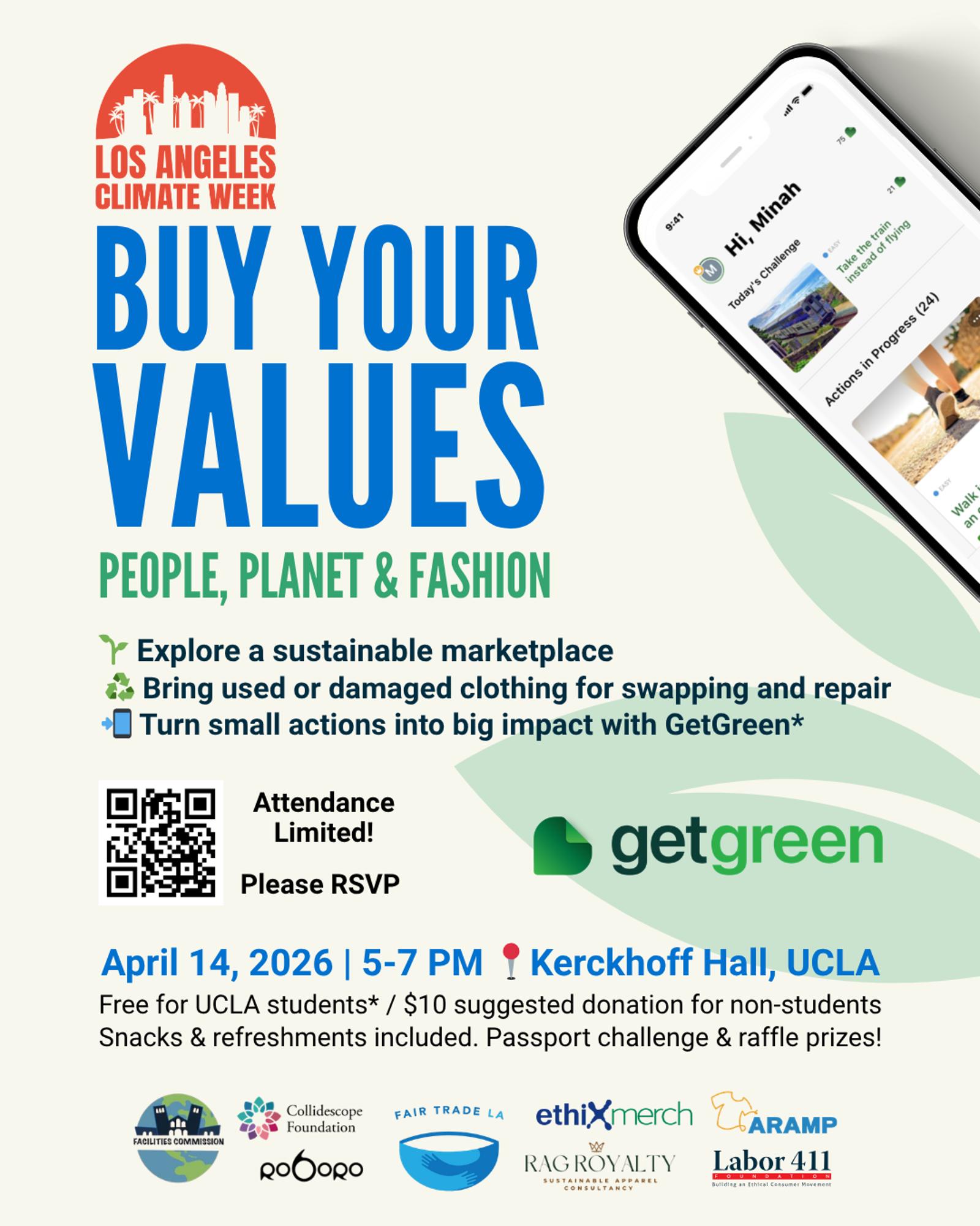 Join us on April 14, 2026, from 5–7 PM at Kerckhoff Hall on the UCLA campus for Buy Your Values: People, Planet & Fashion.