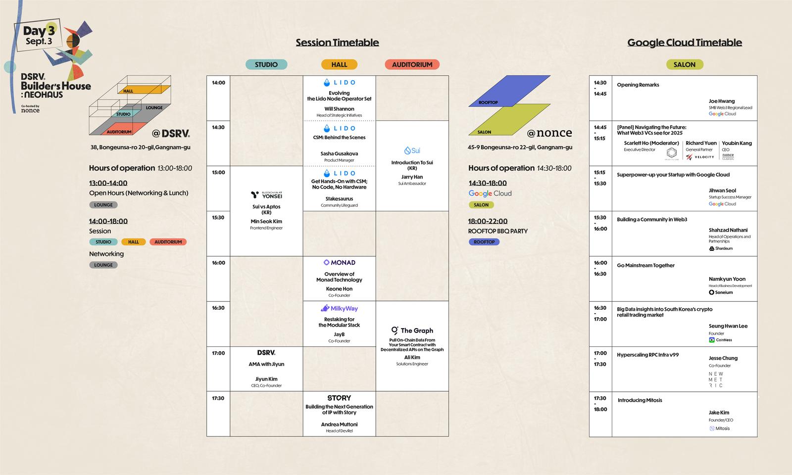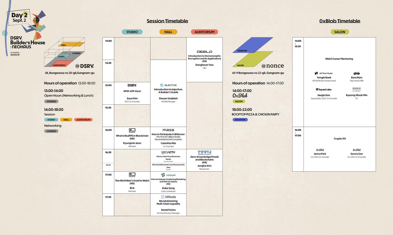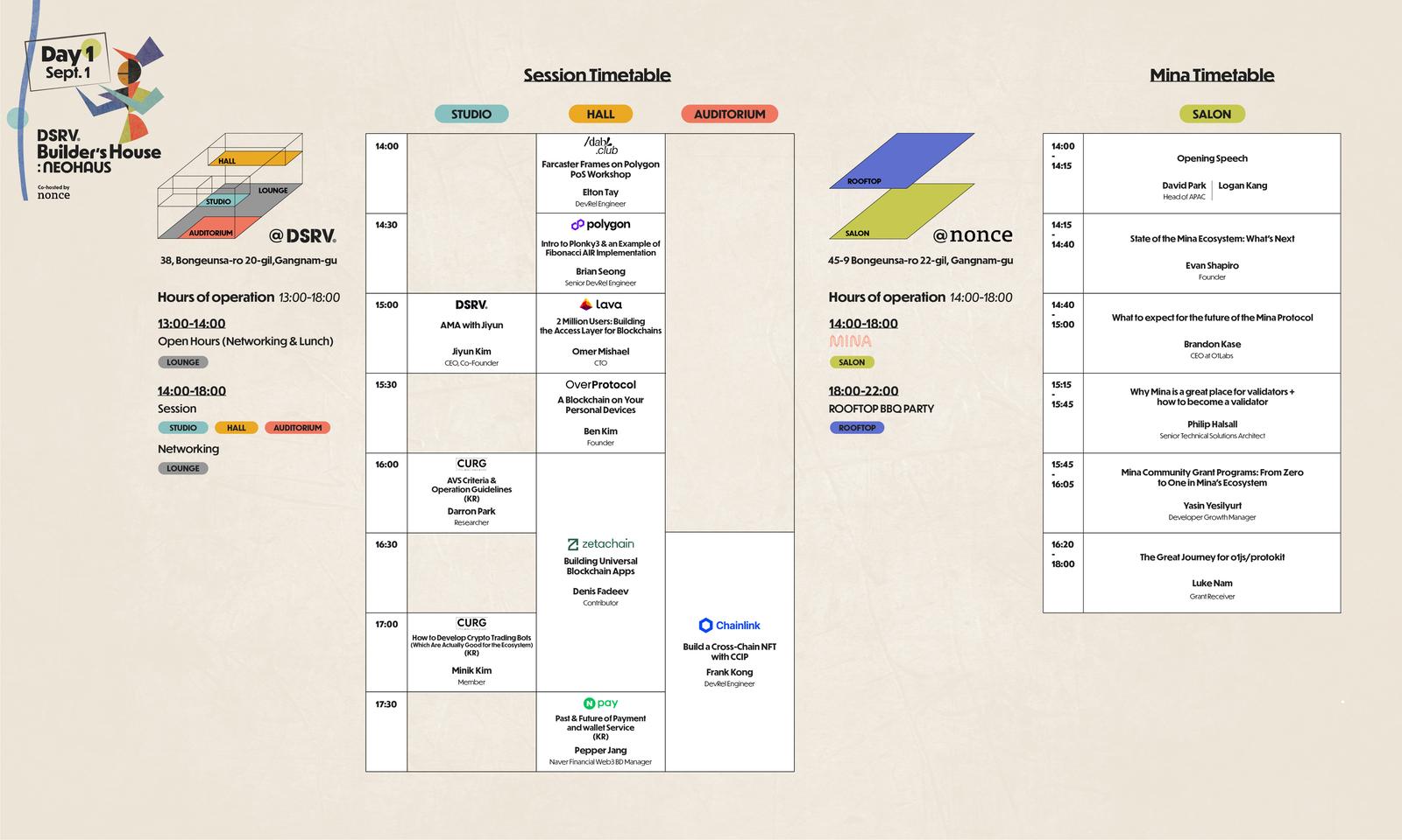 โNEOHAUS will operate across two venues this year: DSRV and nonceโs offices. Our HQ will host multiple partners and sessions over three days, while nonce will house one partner a day (Mina, 0xBlob, Google Cloud). After registering for NEOHAUS, please register separately for Mina, 0xBlob and Google Cloud's sessions at nonce (links below!).
