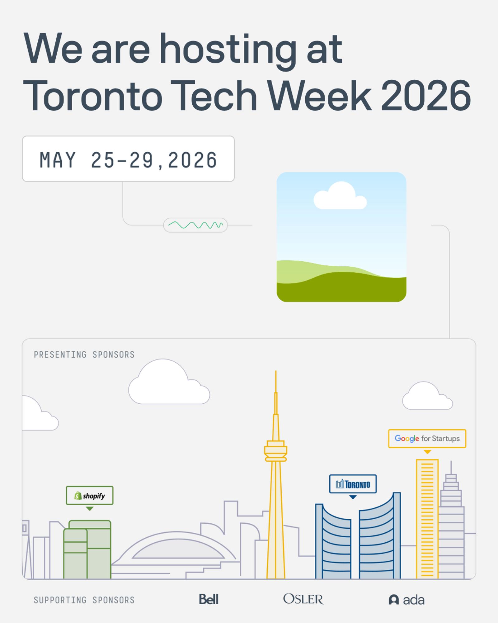 Toronto Tech Week is a citywide celebration of the people building what’s next. From May 25–29, 2026, founders, investors, and builders come together for hundreds of community-led events across Toronto, connecting tens of thousands of people around Canadian tech. Torontotechweek.com.