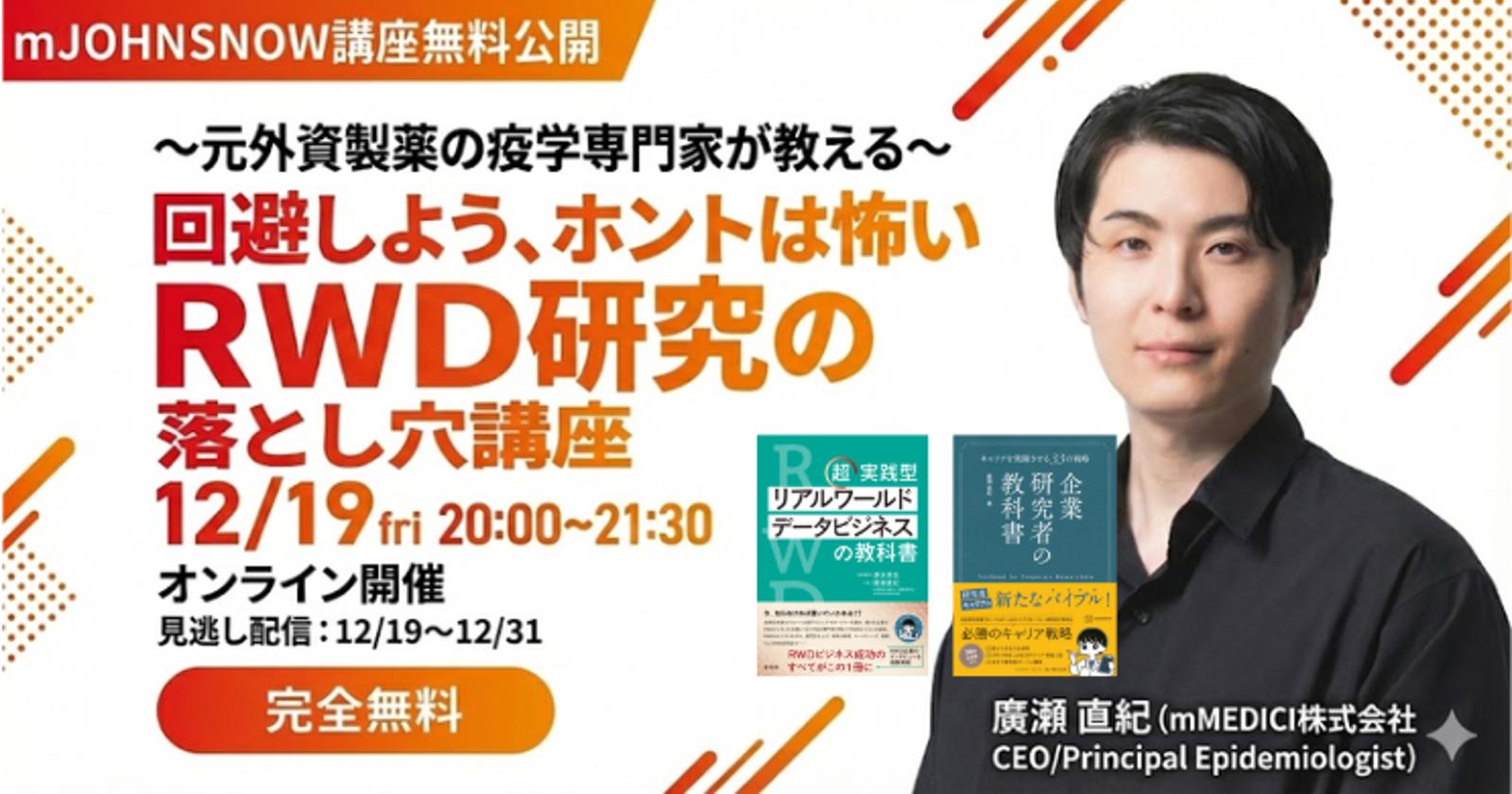 【mJOHNSNOW講座無料公開 】~元外資製薬の疫学専門家が教える~ 回避しよう、ホントは怖いRWD研究の落とし穴講座