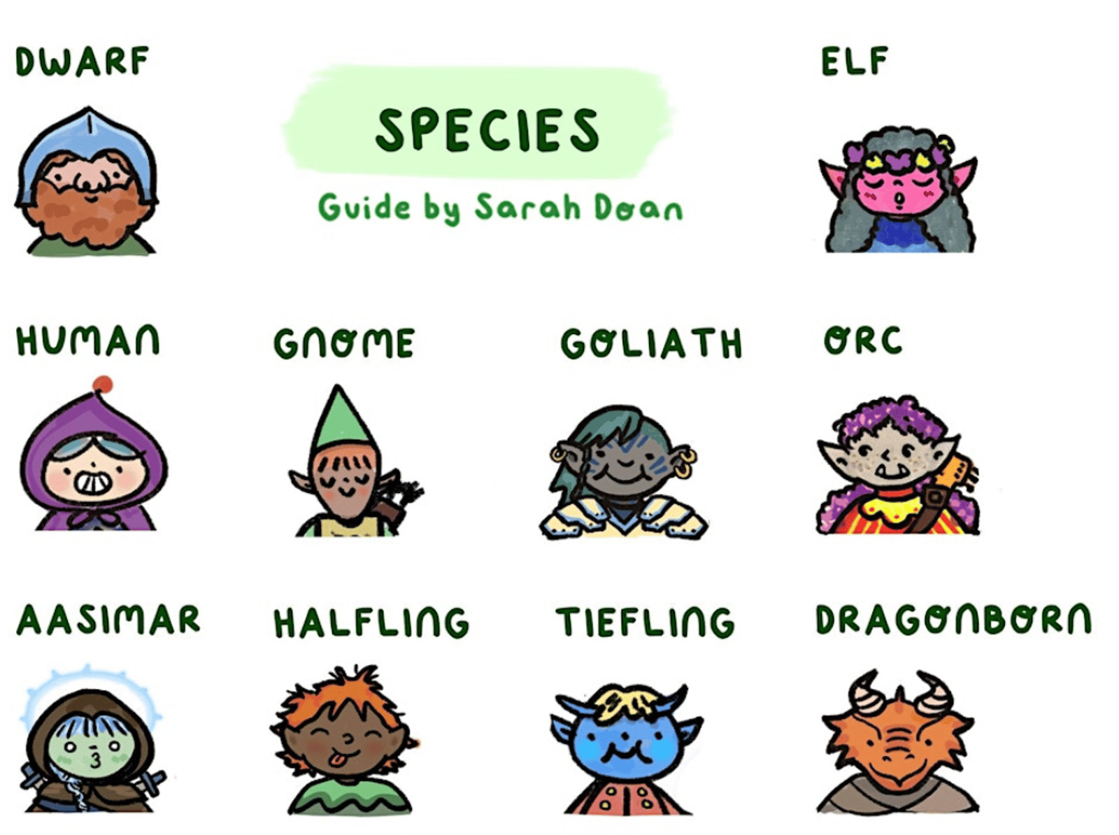 Drawing template & species/class guide provided to help sketch your characters