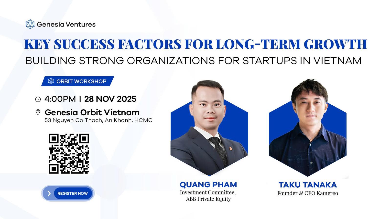 Genesia Orbit HCMC (Genesia Ventures) invites you to "Key Success Factors for Long-Term Growth: Building Strong Organizations for Startups in Vietnam."