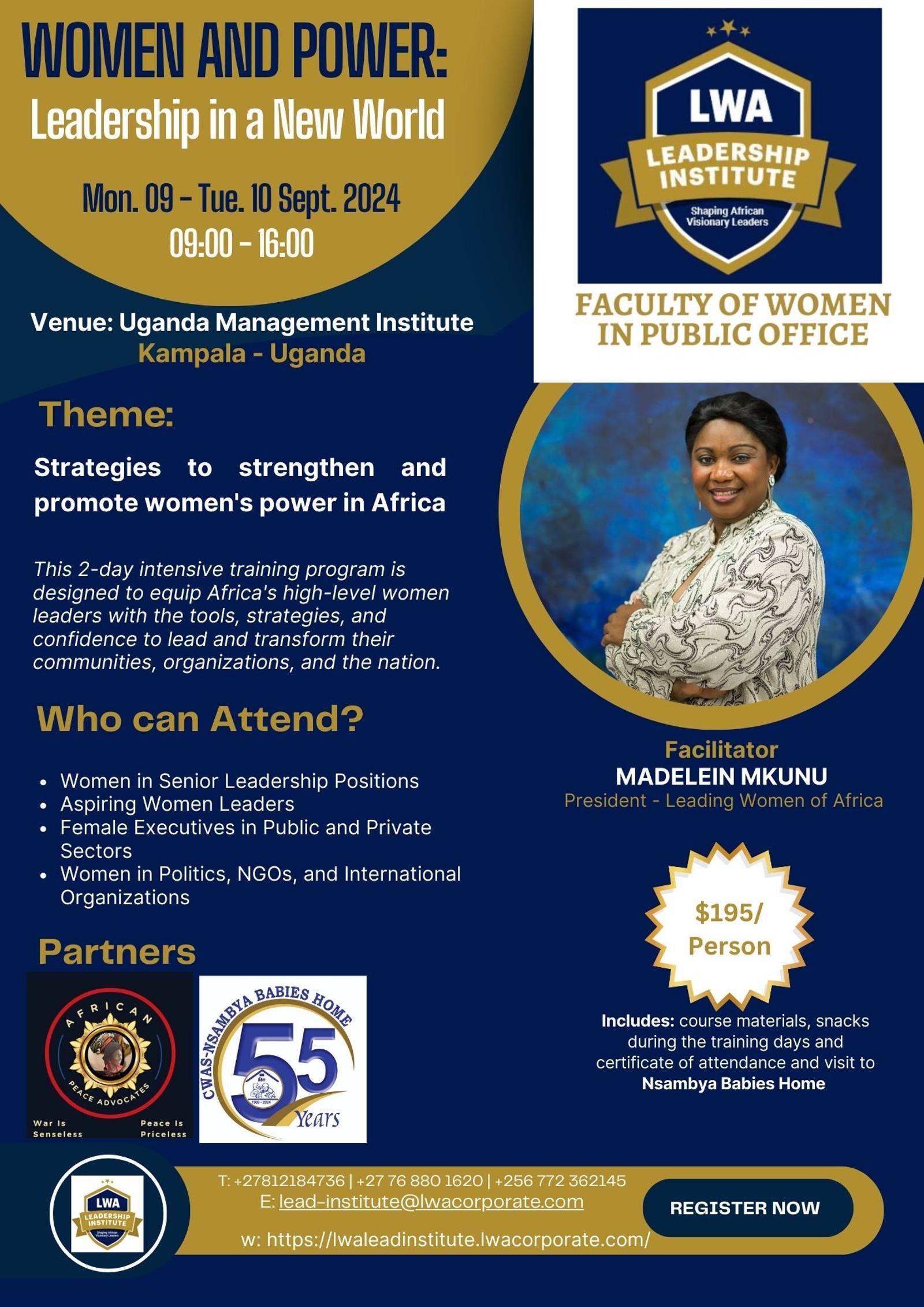 WOMEN AND POWER: Leadership in a New World, Kampala, 9-10 Sept. 2024