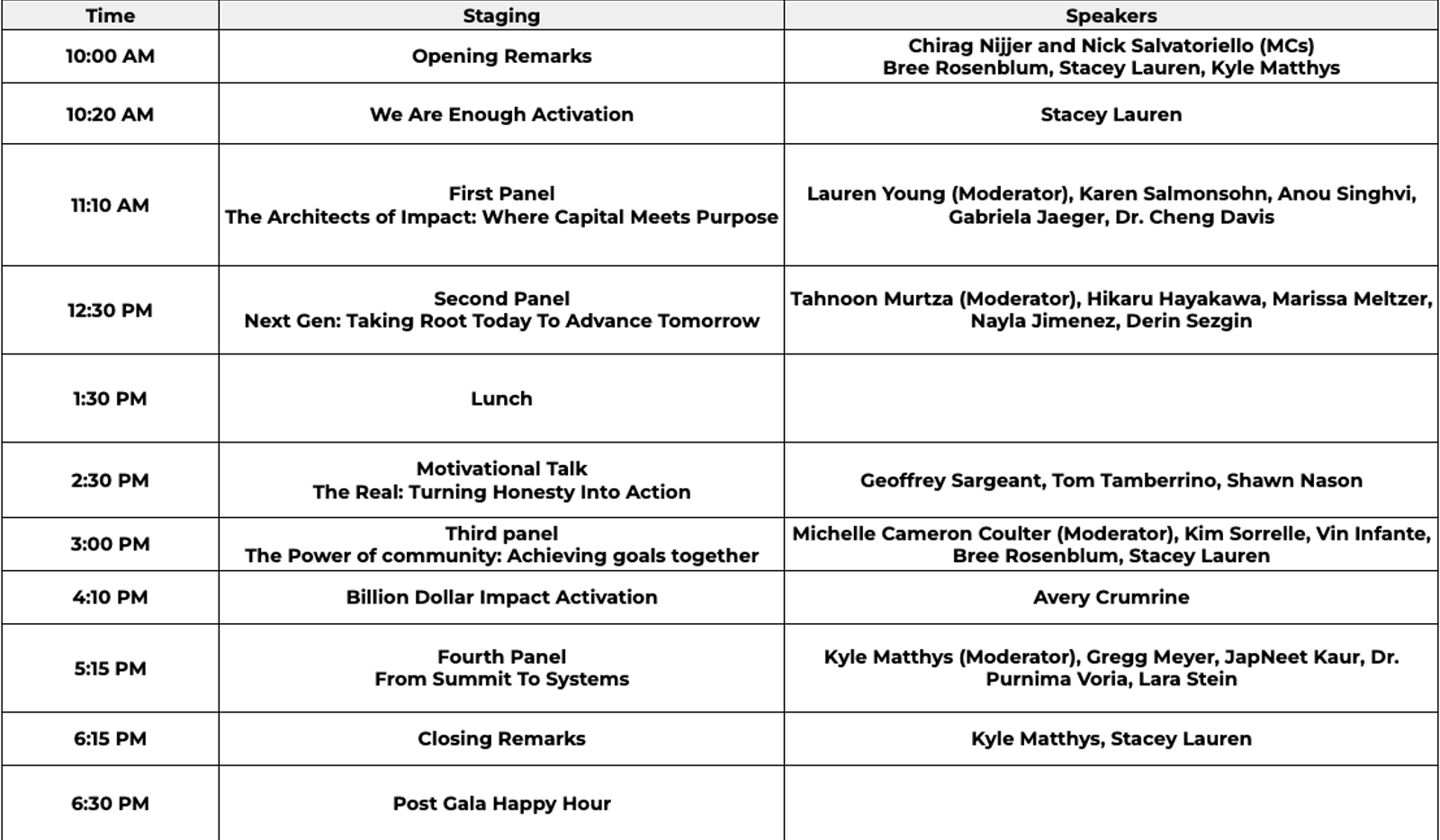 A full-day summit + global showcase welcoming 24 speakers flying in from across the globe, listed below! A gala for those taking root today to shape tomorrow.