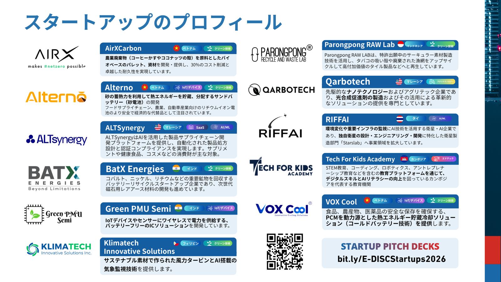 💡 ASEAN8か国およびインドの有望スタートアップ12社によるピッチ