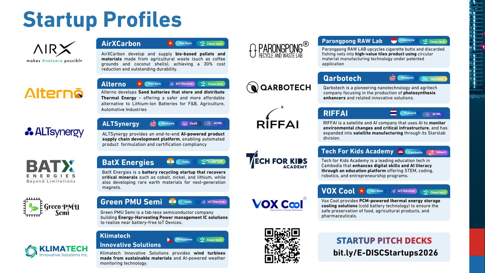 📎 Startup profile decks: