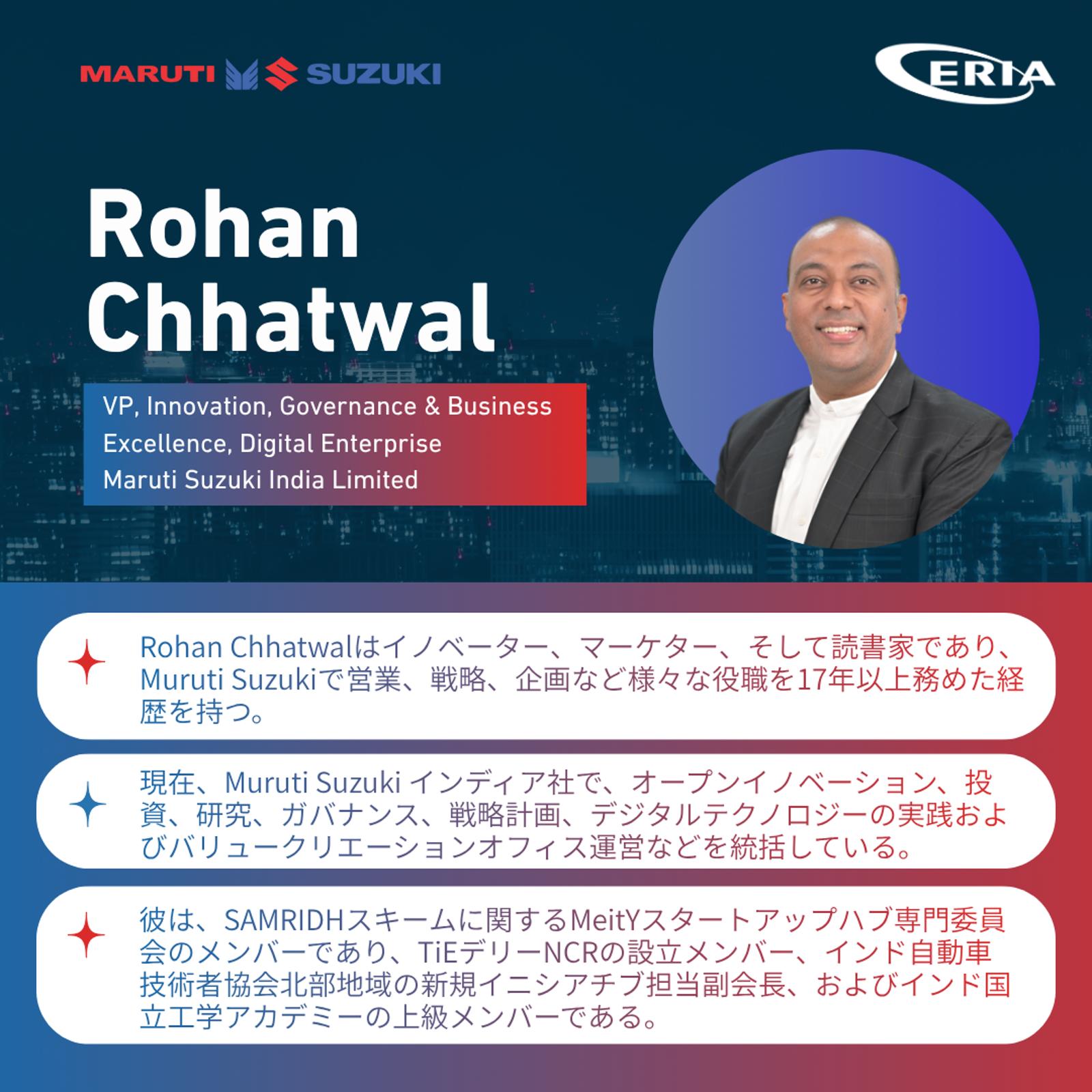 - Mr. Rohan Chhatwal | VP, Innovation, Governance & Business Excellence, Digital Enterprise of Maruti Suzuki India Limited
