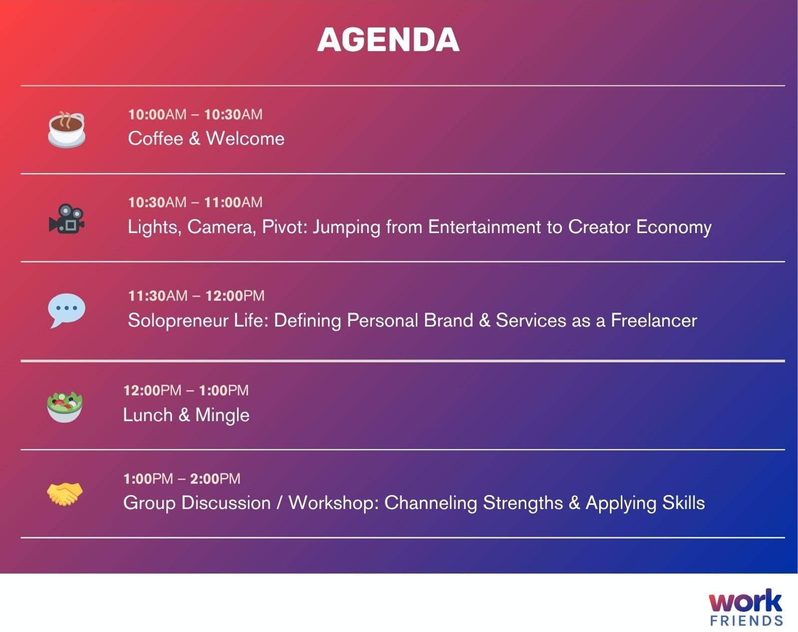 Panel discussions will be moderated by Work Friends Founder & Creator Partnerships Advisor, Meredith Jacobson. Meredith is an independent consultant who has facilitated over $10m in partnerships on behalf of brand, agency, and creator clients.