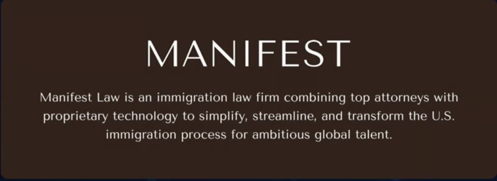 Manifest Law is a modern immigration law firm focused on helping talented professionals build their futures in the United States. From O-1 to EB-1A, EB-2 NIW, and beyond, we combine precise legal strategy with powerful storytelling to translate your accomplishments into a compelling case. Our team includes 70+ immigration lawyers with an average of 12 years of experience and a 95% approval rate across more than 100,000 visa cases.*