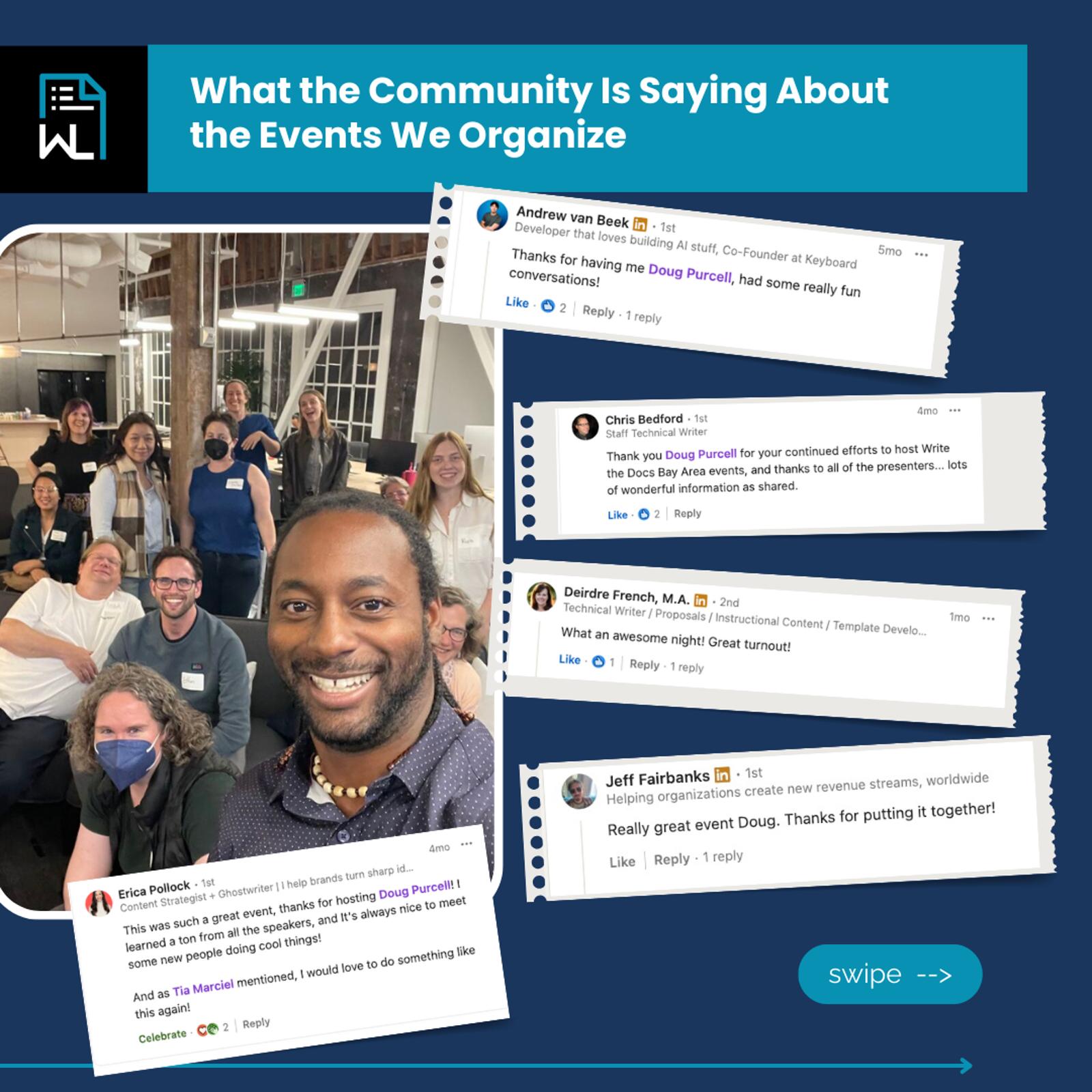 In addition to being a growing hub for staying up to date on the latest trends in technical writing, our meetup is also a place to celebrate community and connect with fellow writers.